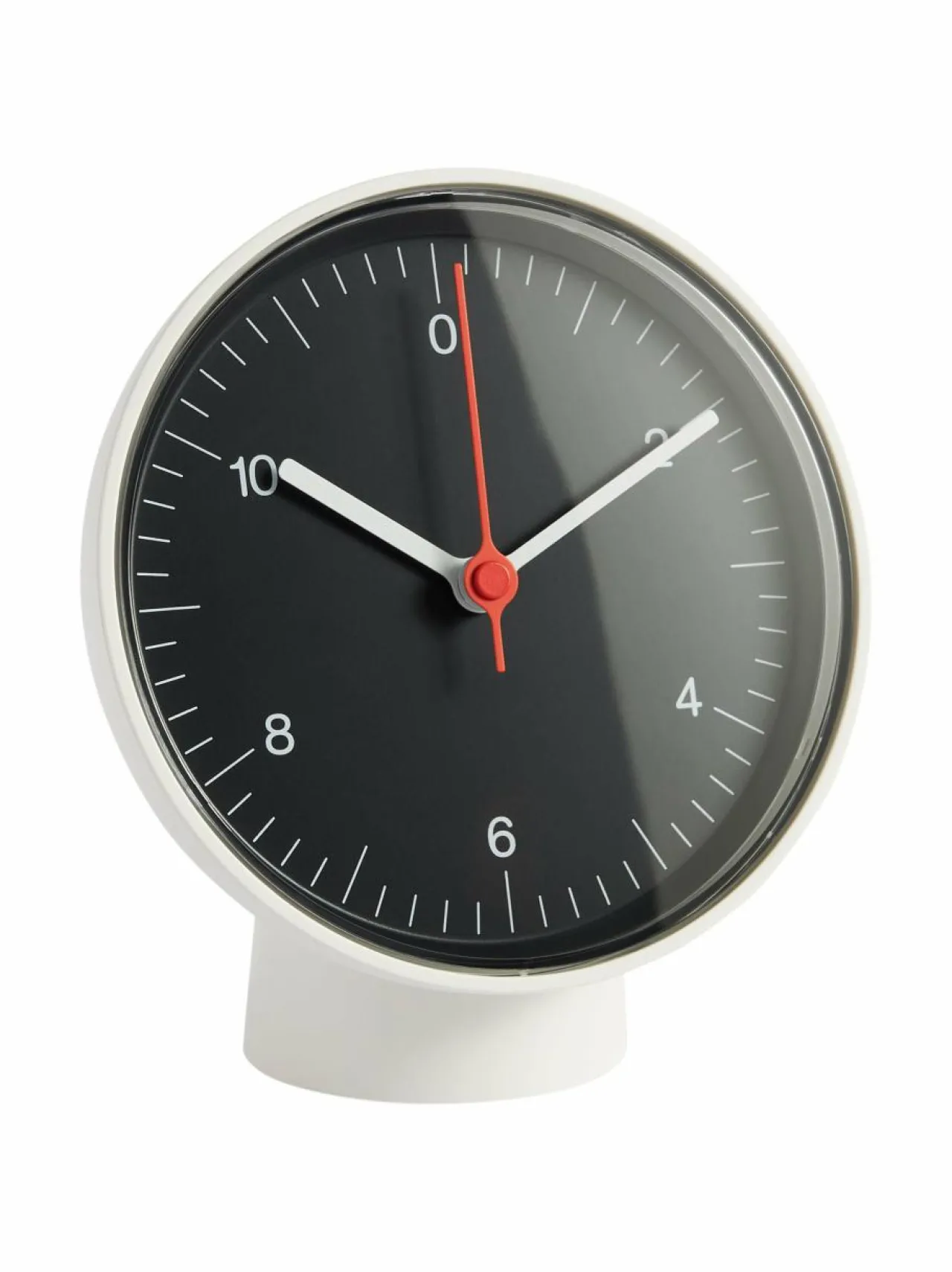 Jasper Morrisonin suunnittelema tyylikäs ja käytännöllinen pöytäkello, joka sopii selkeän ja yksinkertaisen muotoilunsa ansiosta täydellisesti kaikkiin huoneisiin ja ympäristöihin. Lähemmin katsottuna kellotaulusta löytyy pieni leikkisä erikoisuus: perinteisten kello kolmen, kuuden, yhdeksän ja kahdentoista sijaan tämä pöytäkello nimittäin esittelee aikaa parillisilla numeroilla. Sen irrotettava jalusta mahdollistaa sen sijoittamisen joko vaakasuoralle pinnalle tai ripustamisen seinälle. Lähes äänettömän sekuntiosoittimen ansiosta se sopii vaikka makuuhuoneen yöpöydälle. Toimii yhdellä AA-paristolla (ei sisälly pakkaukseen).