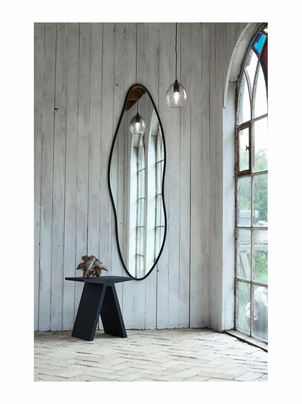Muubs-merkin Michigan-seinäpeili on suunniteltu inspiraationa metropolille ominaisesta sykkivästä liikkeestä. Orgaaniset muodot symboloivat joen rantoja, kun taas musta kehys kunnioittaa teollista tunnelmaa. Peili kutsuu virtaavia muotoja rikastuttamaan sisustusta tehden siitä koristeellisen seinäelementin. Siinä yhdistyvät orgaaniset muodot ja klassinen muotoilu metallikehyksessä. Seinäpeili on ihanteellinen eteiseen, kylpyhuoneeseen tai olohuoneeseen. Peili voidaan ripustaa useilla eri tavoilla, jolloin voit löytää täydellisen paikan. Se voidaan ripustaa sekä vaaka- että pystysuoraan, mikä tekee siitä monipuolisen eri huoneisiin ja voi tuoda uutta elämää kodin eri tiloihin. Peili kiinnitetään seinään takana olevilla kannattimilla ja on helppo ripustaa. Mitat: 50 x 166 x 1,5 cm.
