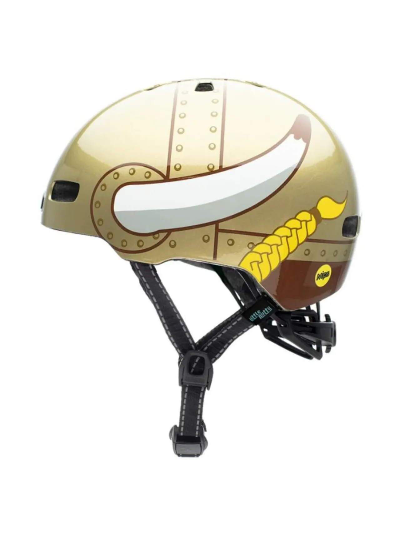 Little Nutty pyöräilykypärässä on 11 muotoiltua ilmanvaihtoaukkoa täydelliseen jäähdytykseen, kestävä ruiskuvalettu ABS-kuori, jonka sisällä on Crumple Zone EPS-sisus, sekä 100% MIPS ja 360 asteen heijastavuus logojen, heijastavien hihnojen ja sovitusjärjestelmän ansiosta. Kypärässä on näppärä ja vaivaton Snap & Go Fidlock magneettinen leukahihnan lukitusjärjestelmä. Irrotettavat 3-osaiset tyynypehmusteet varmistavat turvallisuuden, yksilöllisen istuvuuden ja mukavuuden. Kypärän takana on korkeussäädettävä takakiristin ja edessä helposti irrotettava visiiri.