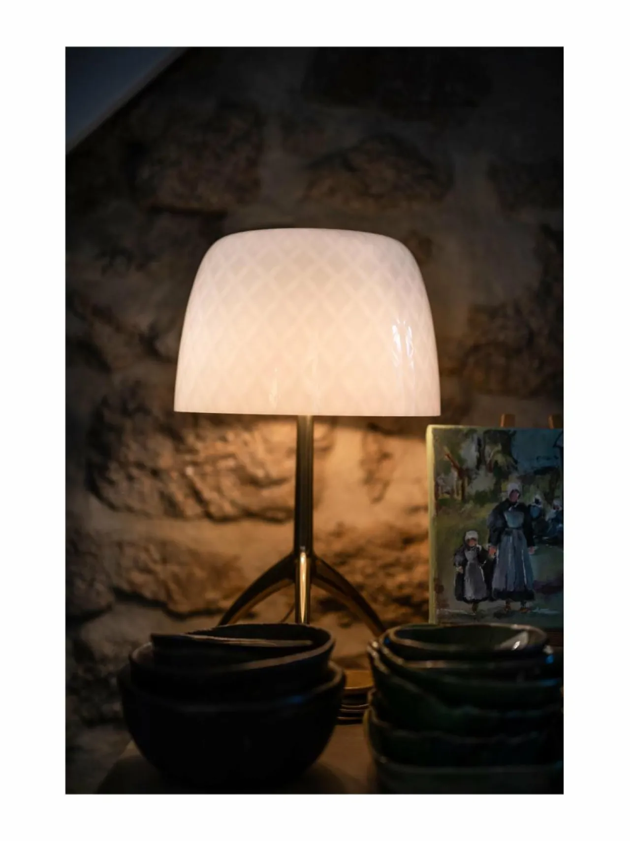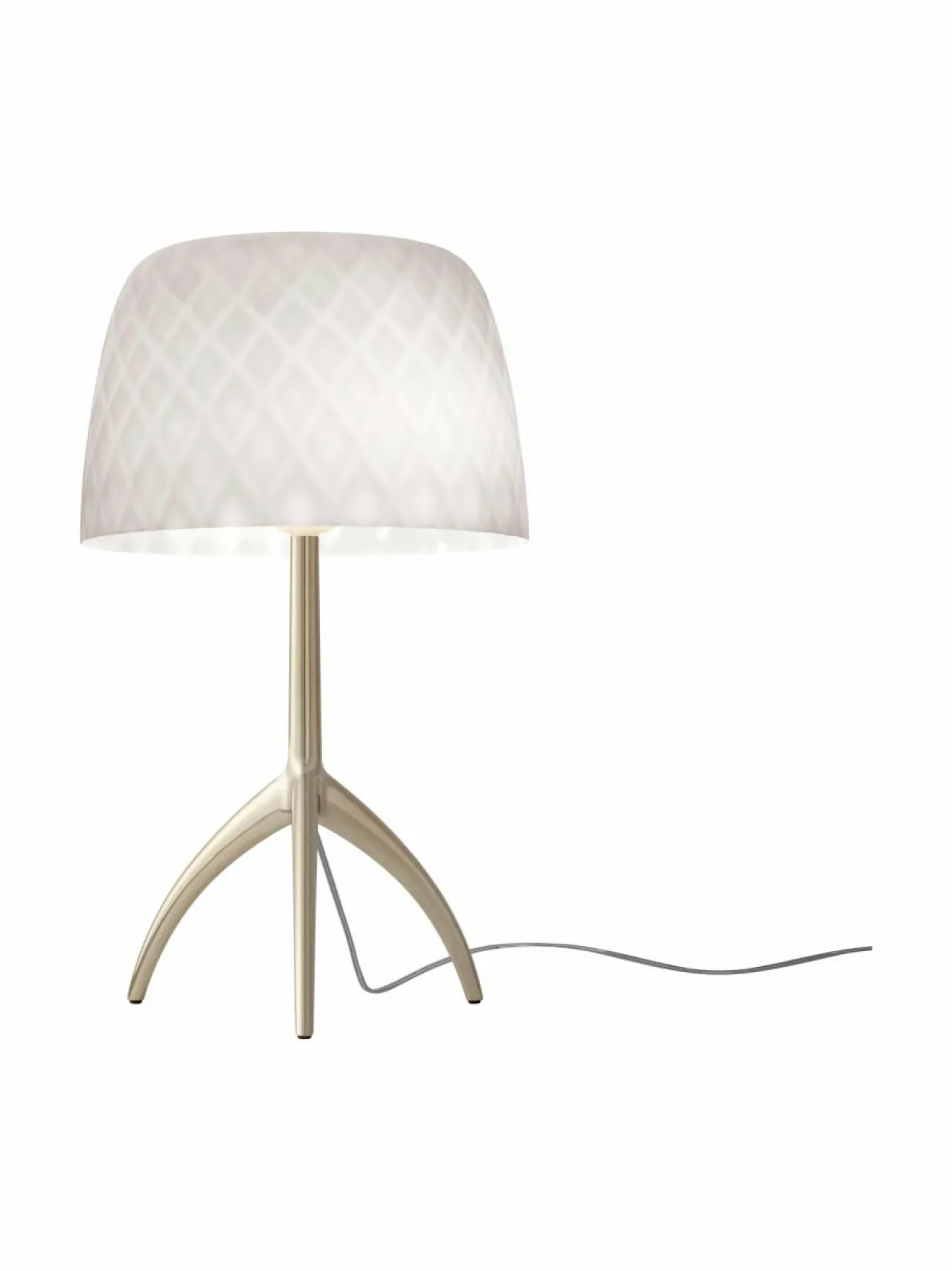 Modernin ja tyylikkään valaisimen on suunnitellut Rodolfo Dordoni. Varjostin on puhallettua lasia ja jalka kiillotettua alumiinia. Tämä erikoispainos juhlistaa 30-vuotispäivää muotoiluklassikosta, joka on koristanut monia koteja ajattomalla eleganssillaan. Lumiere-pöytävalaisimilla puhalletun lasin pintakoriste tulee ensimmäistä kertaa kolmiulotteiseksi: luokka pysyy samana, mutta saa uutta luonnetta. Himmentimellä varustettu malli.