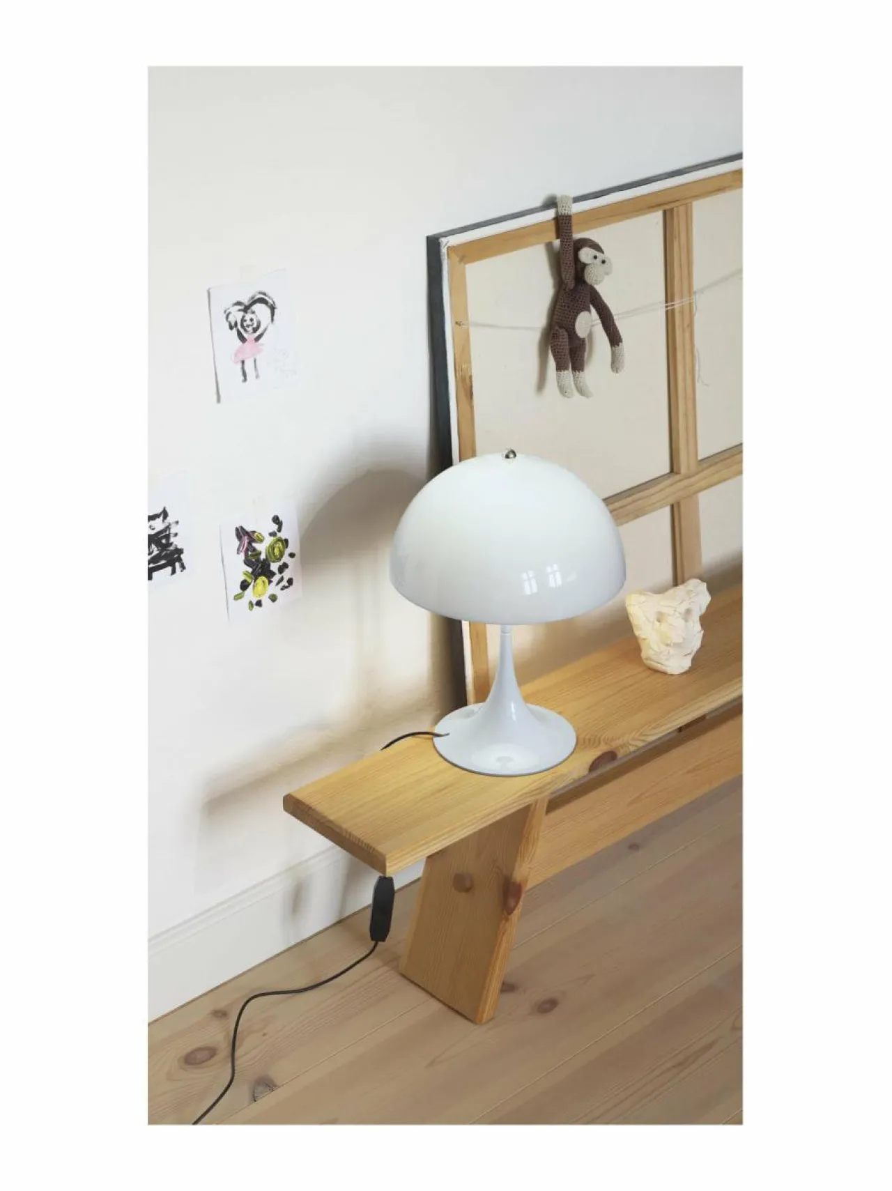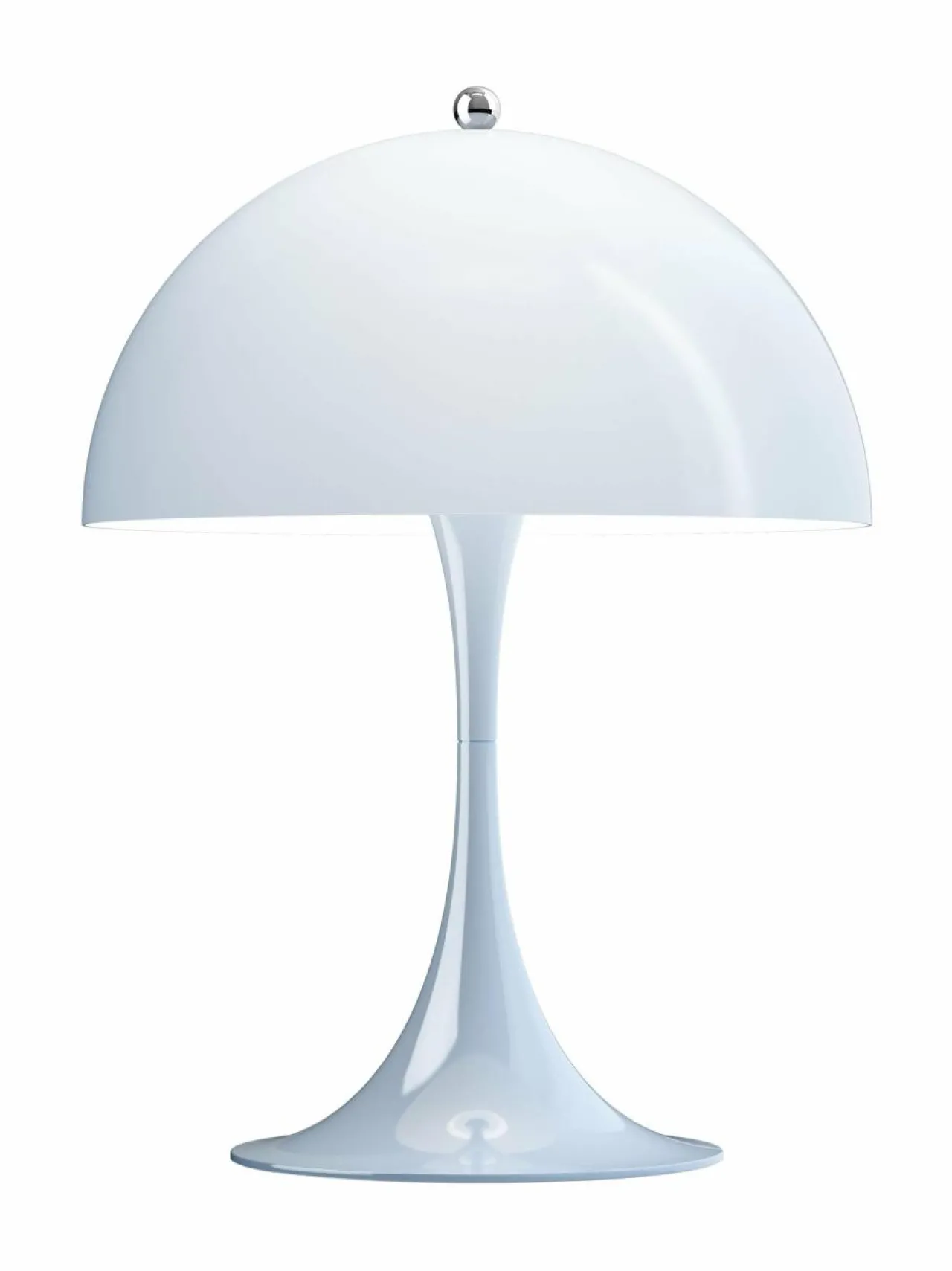 Alun perin Verner Pantonin ja Louis Poulsenin yhteistyössä vuonna 1971 suunnittelema Panthella on ainutlaatuinen malli, joka ei ainoastaan heijasta Pantonin leikkisää tyyliä, vaan siinä myös hyödynnetään orgaanisia muotoja poikkeuksellisen valon tuottamiseksi. Puolipallon muotoinen varjostin ohjaa suurimman osan valosta alaspäin niin, että se heijastuu suppilomaisesta jalustasta, jolloin valo leviää pehmeänä hajavalona ympäristöön. Panthella 250 -pöytävalaisin on pienempi malli, jonka varjostimen halkaisija on 250 mm, joten se sopii hyvin monenlaisiin tiloihin.