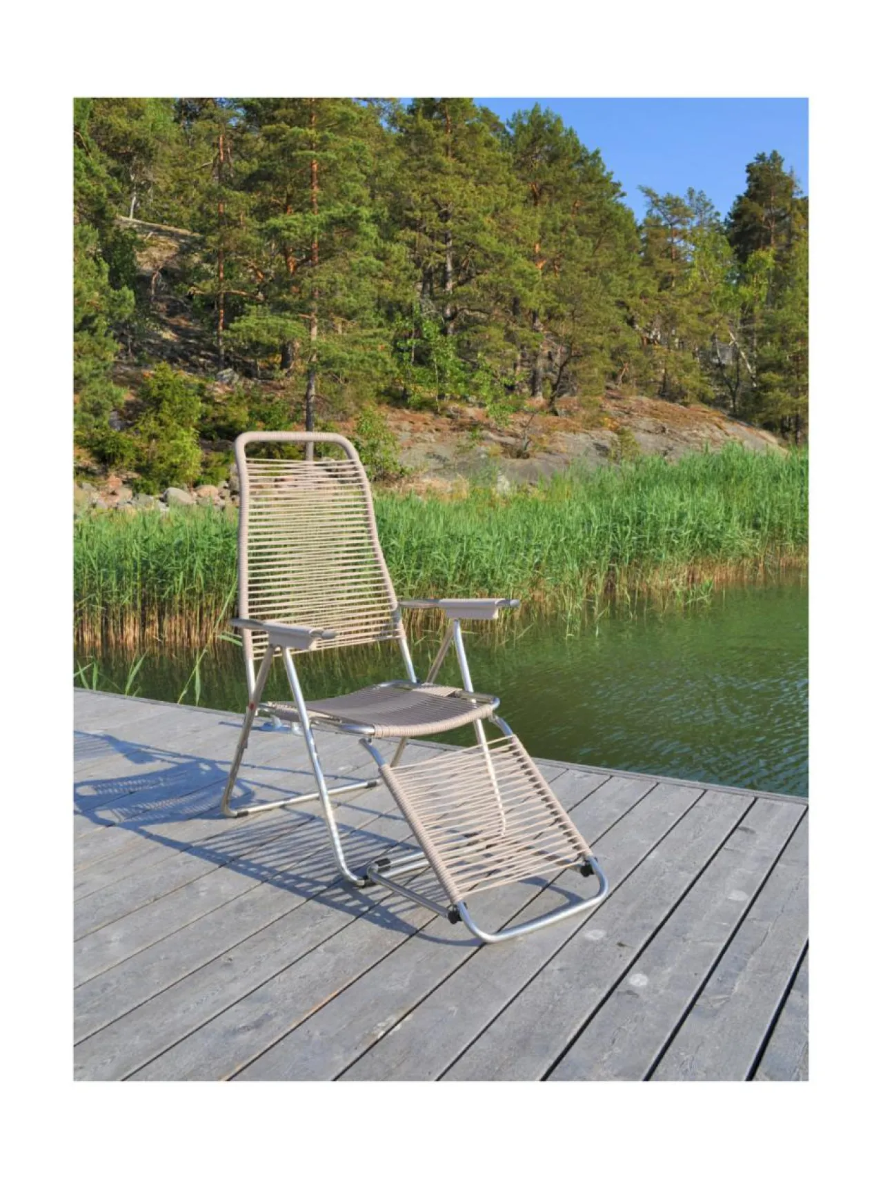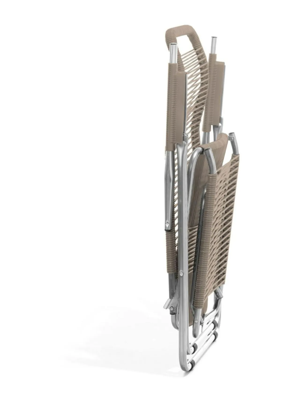 Korkealaatuisesta alumiinista valmistettu tuolin kehikko tekee siitä kestävän ja tukevan. PVC-materiaalista valmistettu spaghettimainen punos takaa maksimaalisen mukavuuden aurinkoisiin kesäpäiviin. Taittuvan rakenteensa ansiosta tuolia on helppo siirtää, varastoida tai vaikkapa ottaa rannalle mukaan.
