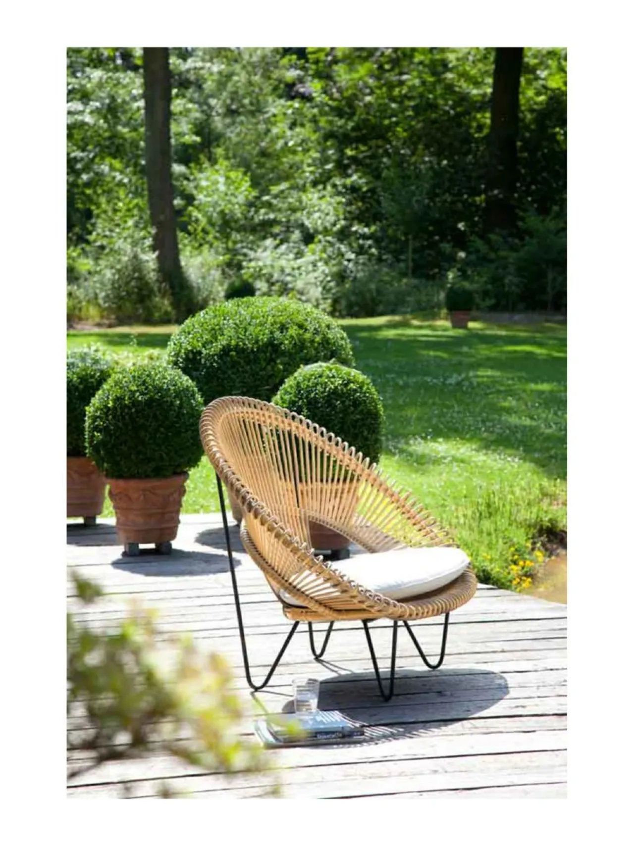Ulkokäyttöön tehty upea muotoiltu nojatuoli Roy Cocoon kutsuu sinut käpertymään ja oleskelemaan terassille ja puutarhaan.