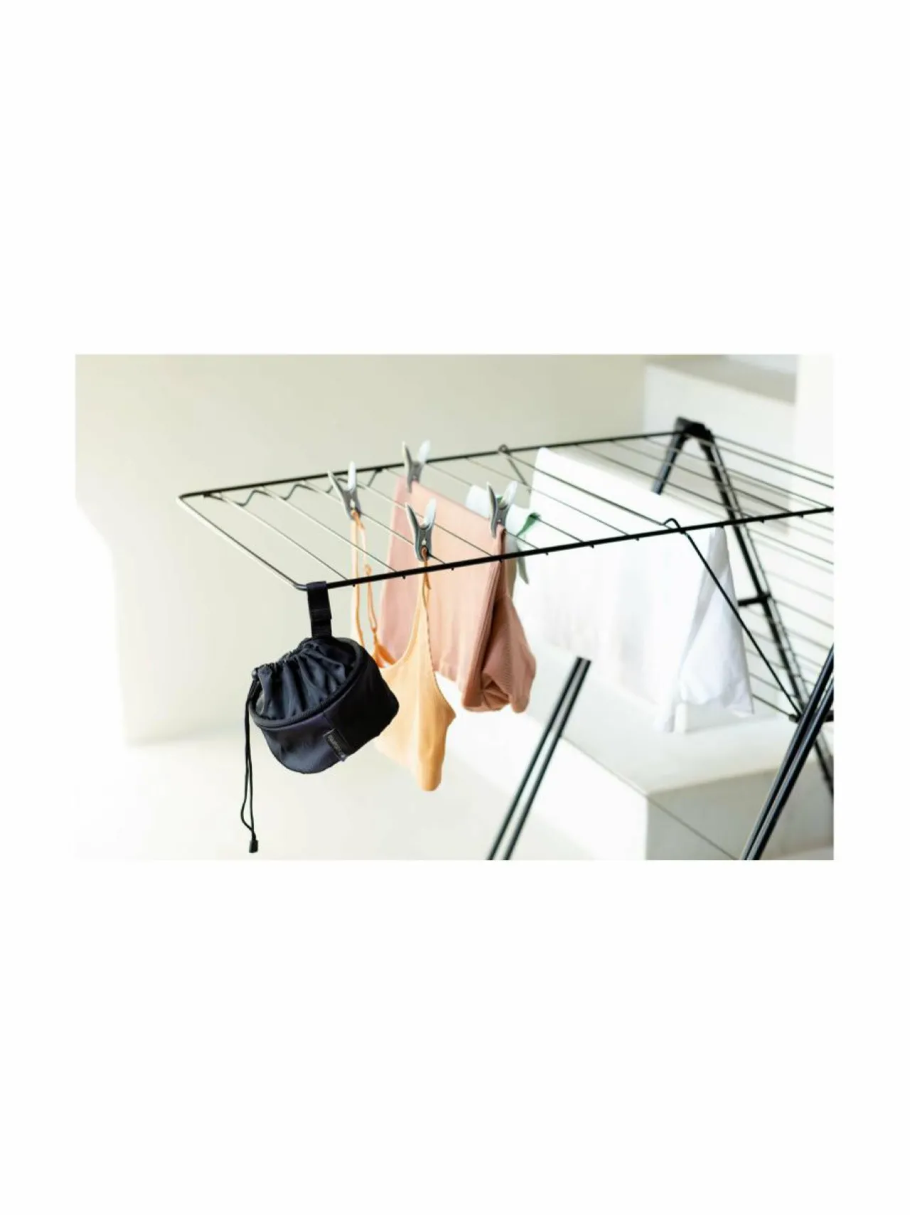 Pyykkejä ripustaessasi voit näppärästi kiinnittää Brabantian pyykkipoikapussin roikkumaan pyykkitelineeseen tai vy…