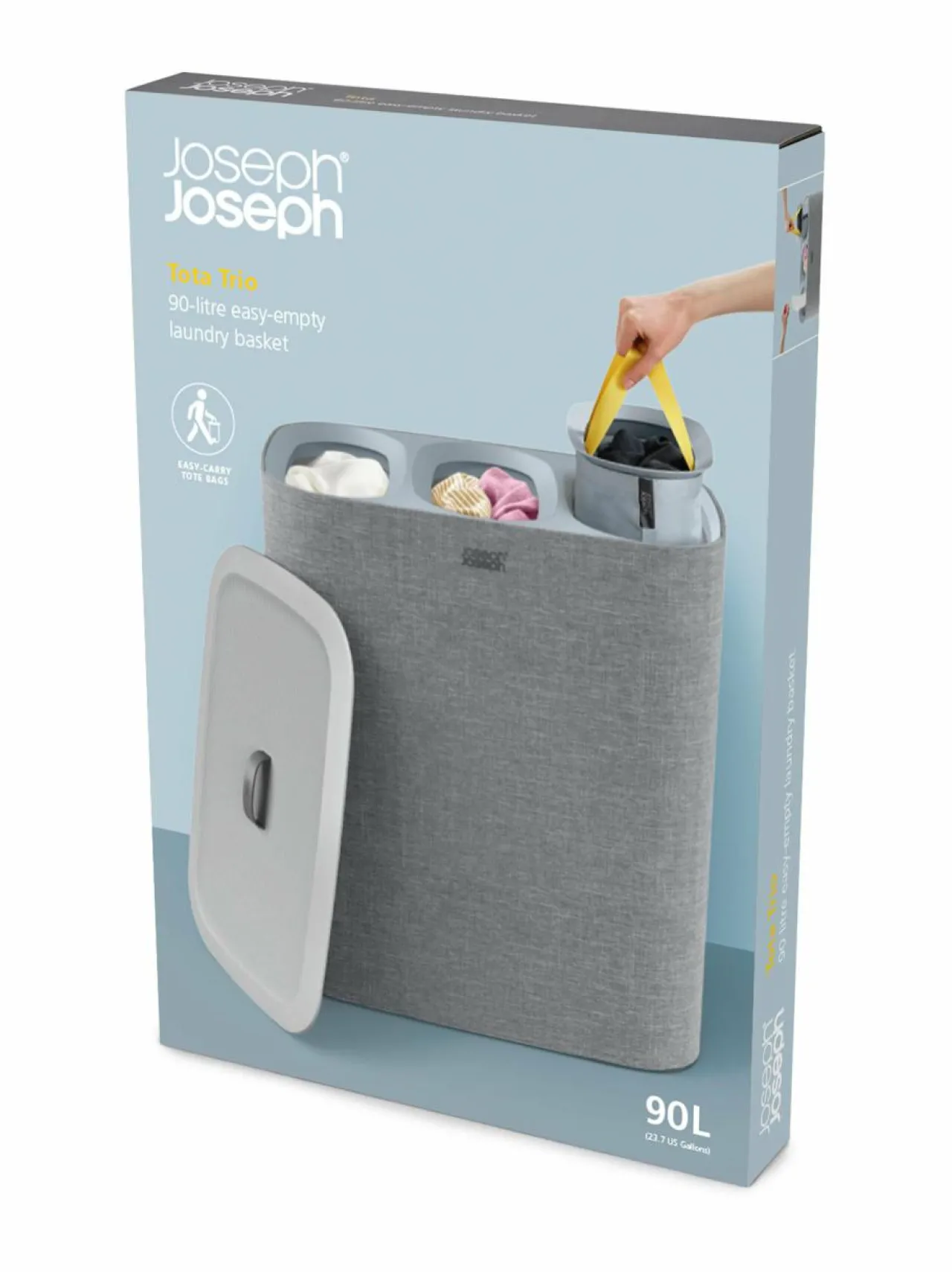 Pyykkihuolto|Joseph Joseph Tota Trio Easy-empty -pyykinlajittelukori 90 l GREY