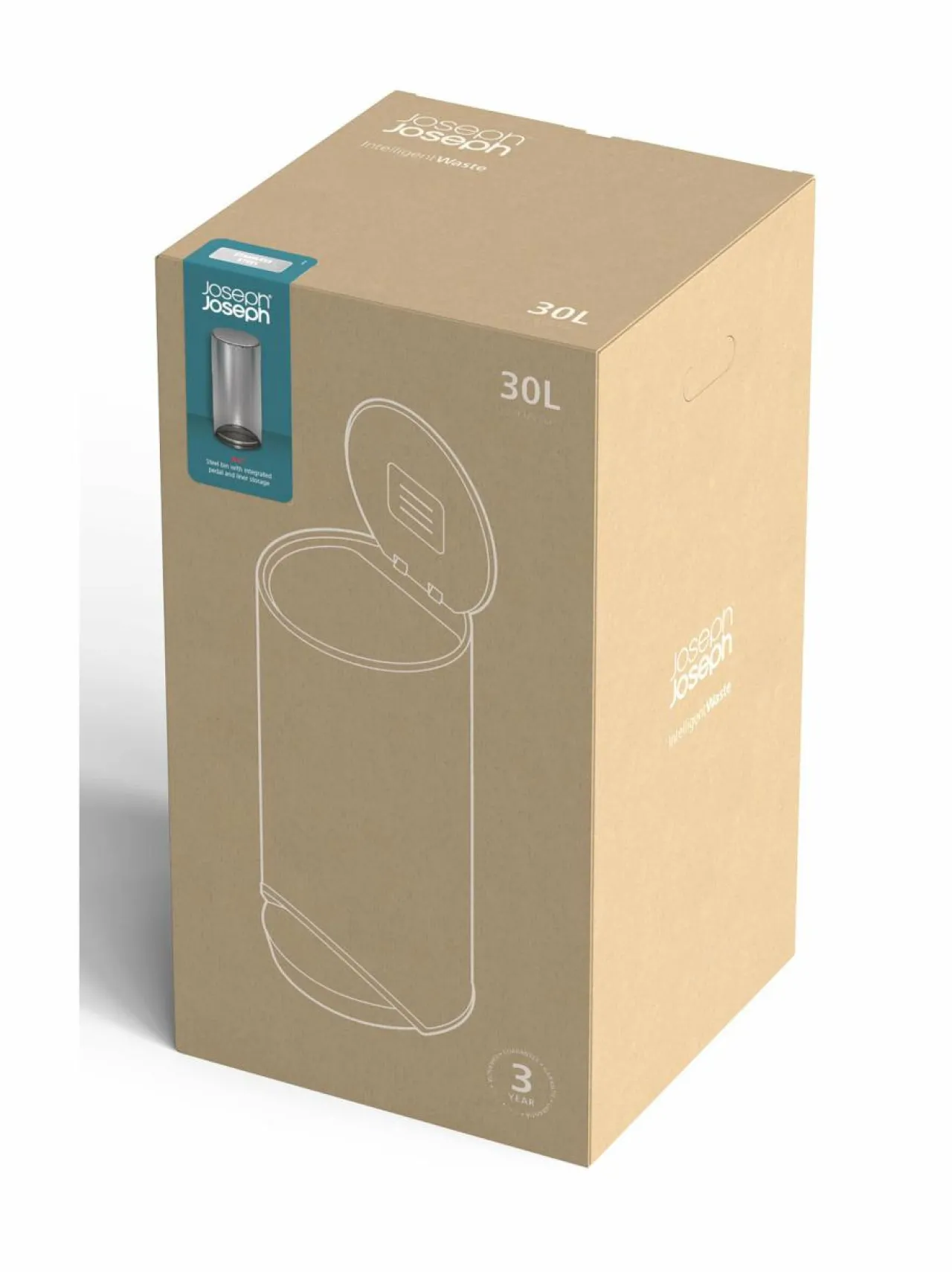 Joseph Josephin Arc-roskakori on tyylikäs ja tilava ratkaisu, joka sopii erinomaisesti keittiöön tai muihin tiloihin, joissa tarvitaan enemmän kapasiteettia. Tässä ohuen muotoilun poljinroskakorissa on käytännöllinen tasku, johon voit säilyttää roskapussit. Voit käyttää Arc-korin kanssa Joseph Joseph IW5 -roskapusseja tai standardikokoisia roskapusseja tarpeen mukaan.