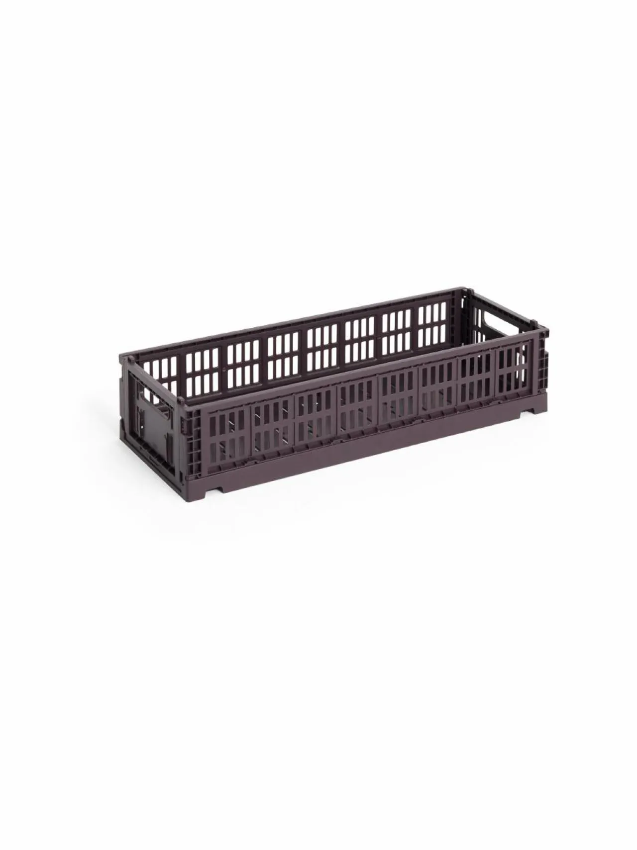 HAY Colour Crate Mini on sarja värikkäitä säilytyslaatikoita, joissa on tunnusomainen, rei’itetty muotoilu. Valmistettu 100 % kierrätetystä materiaalista, mini-laatikot sopivat suurempiin laatikoihin ja ne voidaan pinota päällekkäin. Monitoimiset laatikot sopivat erinomaisesti pienten tavaroiden säilyttämiseen ja järjestämiseen hyllyillä, pöydillä tai kaapeissa. Laatikon mitat ovat 13 x 34,5 x 8 cm.