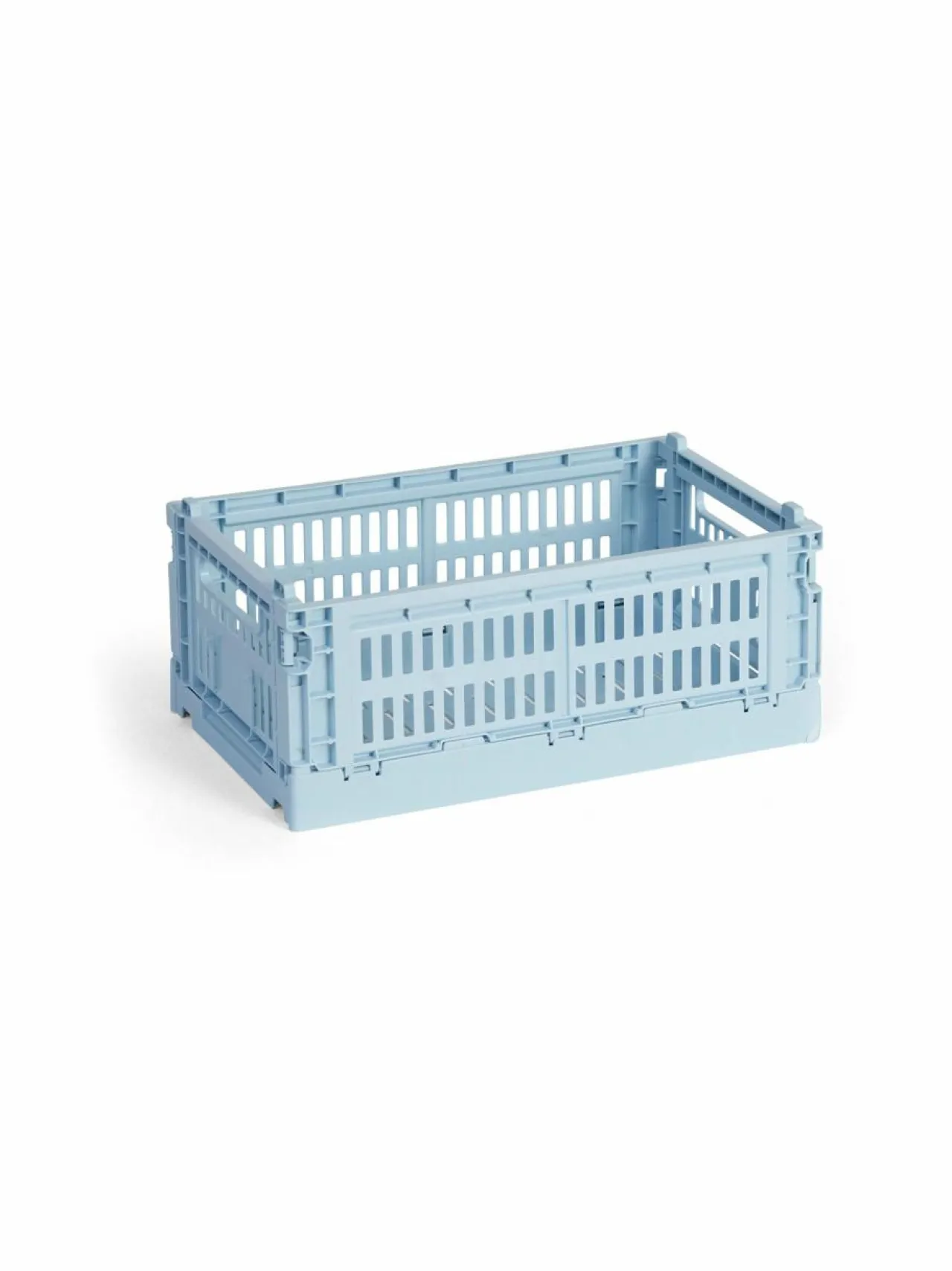 HAY Colour Crate on sarja värikkäitä säilytyslaatikoita, joissa on tunnusomainen, rei’itetty muotoilu. Valmistettu 100 % kierrätetystä muovista. Nämä laatikot ovat pinottavissa ja saatavilla eri kokoisina. Laatikot sopivat erinomaisesti erilaisten tavaroiden säilyttämiseen ja järjestämiseen hyllyillä, pöydillä tai kaapeissa. Mitat ovat 17 x 10,5 x 26,5 cm.