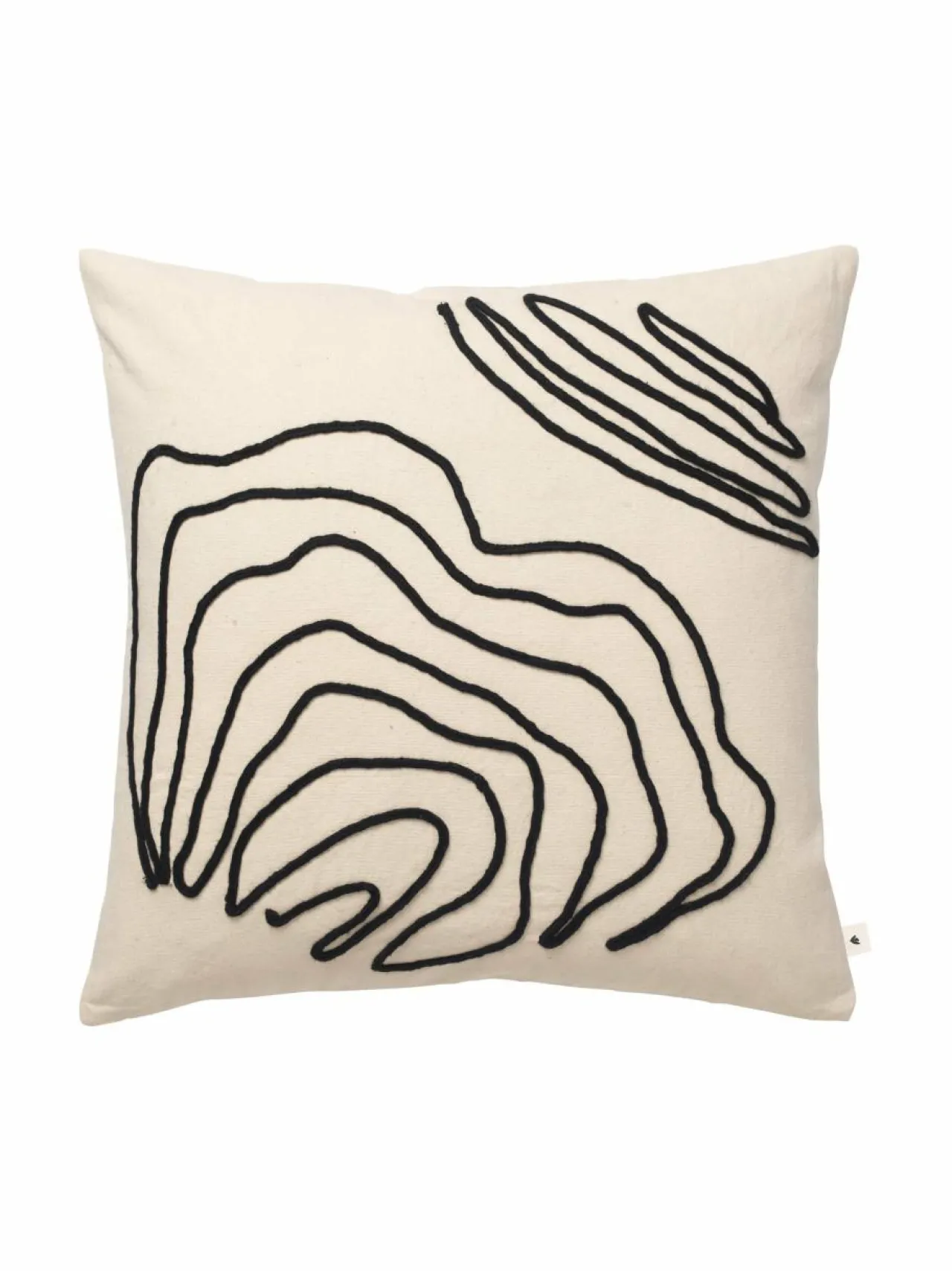 Ferm Livingin Jot-tyynynpäällinen on valmistettu 100 % GOTS-sertifioidusta luomupuuvillasta. Luonnon liikkeistä inspiroitunut kuvio on käsin ommeltu puuvillapunoksella, joka erottuu kauniisti teksturoidusta kankaasta. Sisältää höyhen- ja untuvatäytteen, joka tekee tyynystä erityisen miellyttävän.