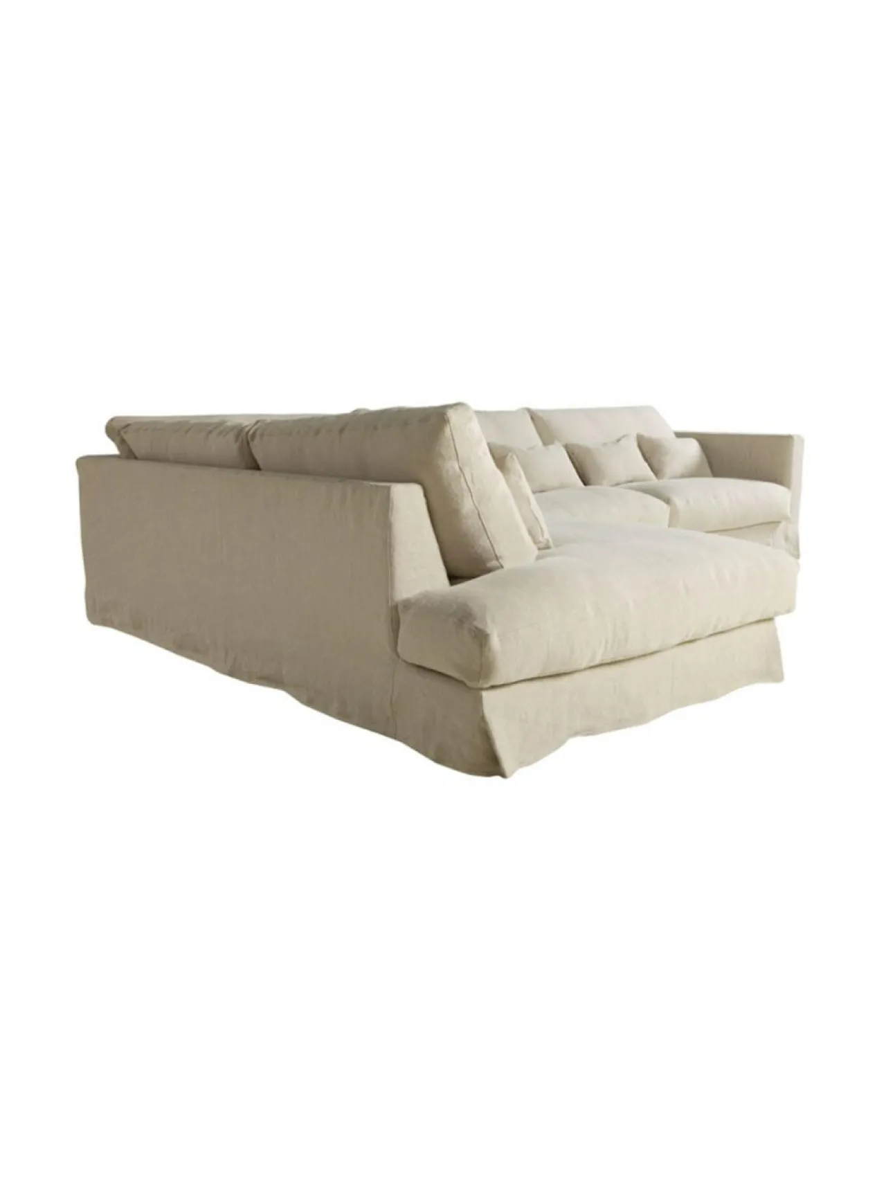 Sohvan leveys on 346 cm, korkeus 85 cm ja syvyys 110/235 cm. Sohvan istumakorkeus on 44 cm ja istuinsyvyys 65 cm.Tuotenumero1508669 Materiaali100% Belgian pellava Hoito-ohjeetviikottainen tyynyjen pöyhintä PesuohjeetKonepesu Pesulämpötila30 °C Väri9 Avainsanatsohva, divaanisohva, rento sohva, Belgian pellava