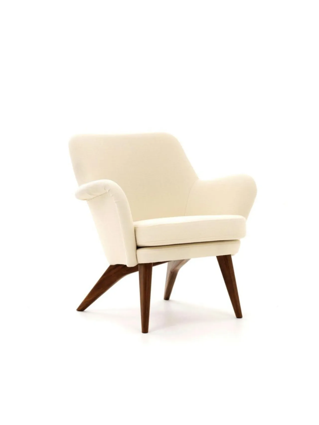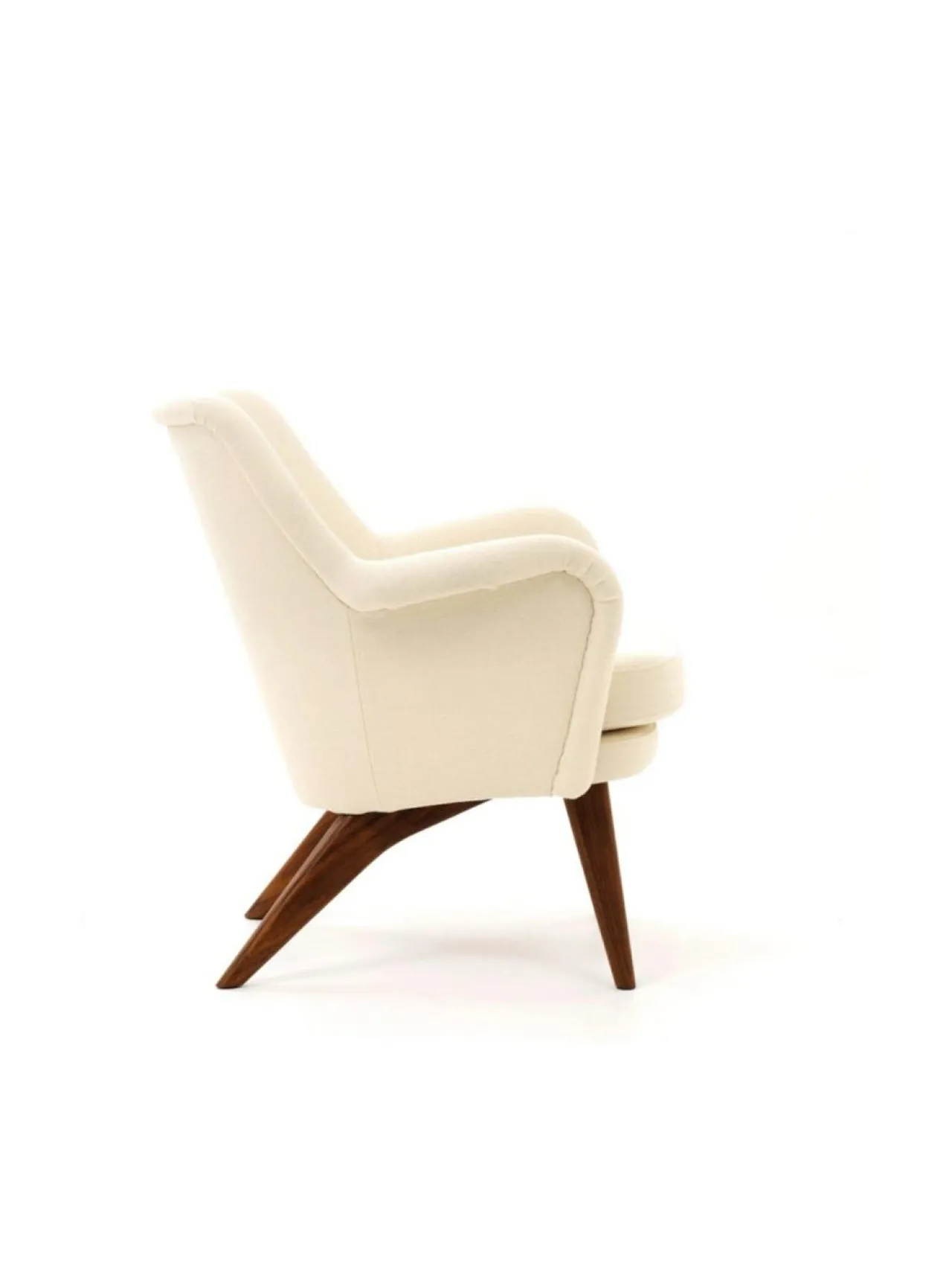 Tämä Pedro nojatuolin jalat ovat pähkinäpuuta ja verhoilukangas ylellistä, sileää Vidar villakangasta.