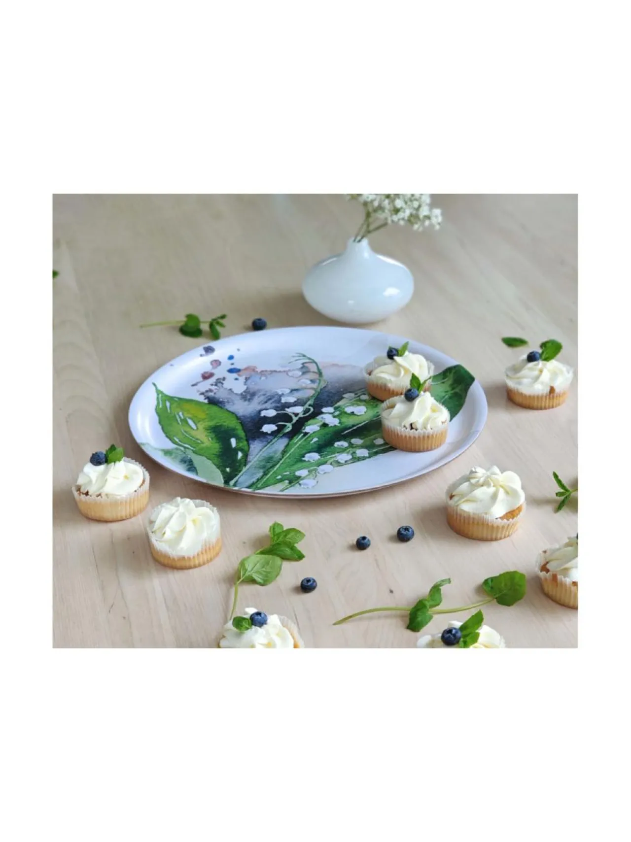 Tarjotin on monipuolinen kattauksen ja muun sisustuksen käyttötavara. Tämä pyöreä tarjotin juuri sopiva kakkujen tarjoilulautaseksi. Maalauksellinen tarjotin on ihana sisustusesine myös sohvapöydälle.