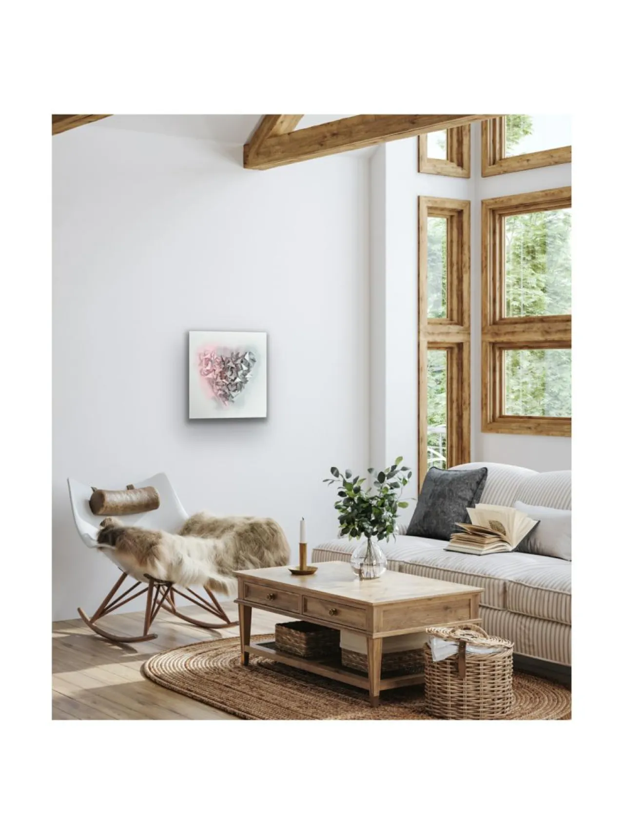 Tämä herkkä ja samanaikaisesti vahva teos on upea lisä moneenkin sisustukseen. Se sopii niin lastenhuoneeseen kuin moderniin sisustukseen esim. olohuoneeseen tai toimistotilaan. Teos on syntynyt rakkauden eri tunteista, niistä ylä ja alamäistä jotka kuuluvat asiaan.