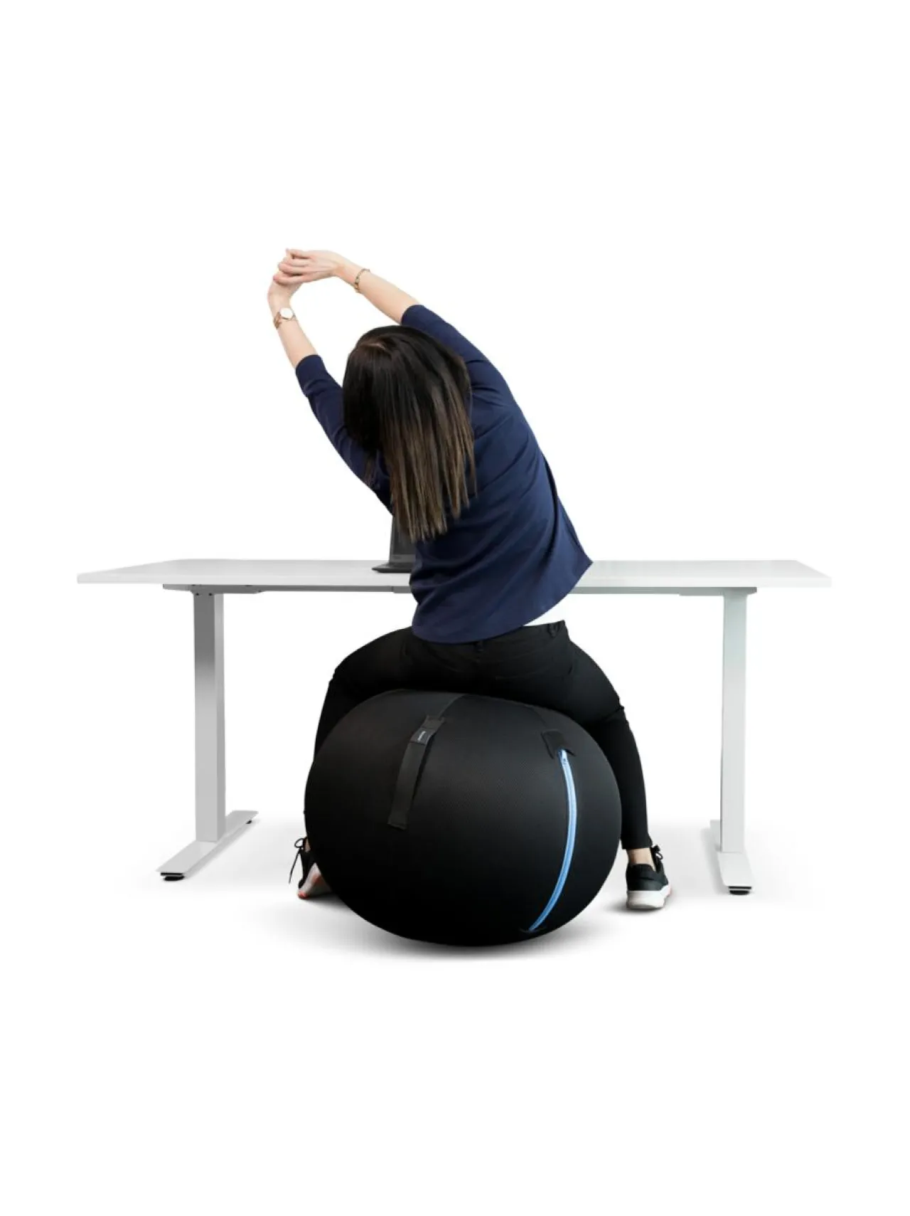 GetUpBall on ergonominen toimistopallo. Se vahvistaa keskivartalon, selän ja jalkojen lihaksia samalla, kun sen päällä istutaan ja työskennellään. GetUpBall lisää tasapainottelua istumisessa, joka johtaa ryhdin paranemiseen. Mukana toimitetaan ilmapumppu. Halkaisija 65cm, sopii alle 170 cm pituisille. Väri: musta, sininen vetoketju. Painoraja: 120kg. Pallo sisältää 0,5kg hiekkaa. Takuu: 1 vuosi.