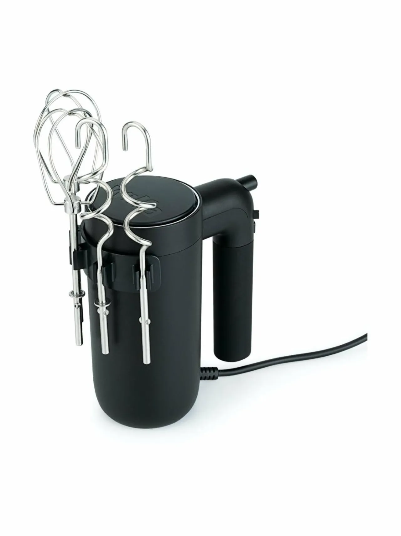 Sulavasti muotoiltu mattapintainen sähkövatkain. 500 W moottori ja useat nopeusasetukset. Mukana vatkaimet ja koukut.