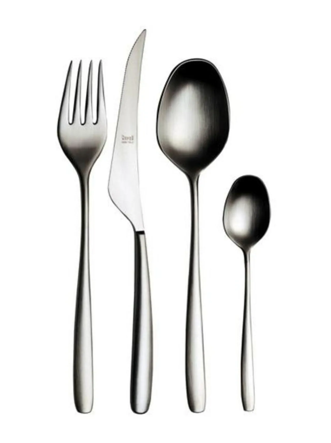 Moderni design, italialainen muotoilu. Tyylikäs mattapinta ’Ice’. Aterinsetti sisältää kuusi ruokahaarukkaa, kuusi ruokaveistä, kuusi ruokalusikkaa ja kuusi kahvilusikkaa. Konepesunkestävää korkealaatuista suomalaista ruostumatonta terästä.