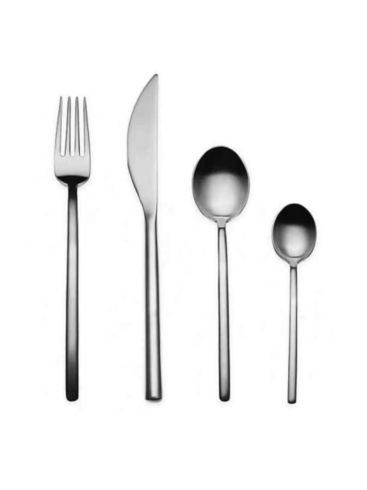 Due on oodi italialaiselle modernille designille. Sen muotoilu lähenee täydellisyyttä eikä se kyllästytä koskaan! Mattapintaine Due Ice aterinsetti sisältää kuusi ruokahaarukkaa, kuusi ruokaveistä, kuusi ruokalusikkaa ja kuusi kahvilusikkaa. Materiaali on korkealaatuista suomalaista konepesunkestävää ruostumatonta terästä.