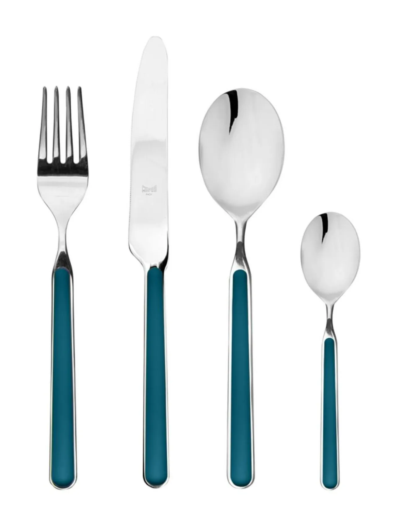 Lasikuidulla rikastettu hartsinen kahvaosa takaa aterimien kestävyyden ja värejen kirkkauden monien pesukertojenkin jälkeen. Kahvan hartsiosat ovat ultraäänihitsattuja mikä tekee kahvaosasta pitkäkestoisen. Materiaali ruostumatonta terästä, kahvaosat hartsia. Konepesunkestävä. Valmistettu Italiassa.Tuotenumero1518970 Materiaaliruostumaton teräs, hartsi, lasikuitu VäriBLUE Avainsanataterimet, aterinsetti, väri, värilliset aterimet