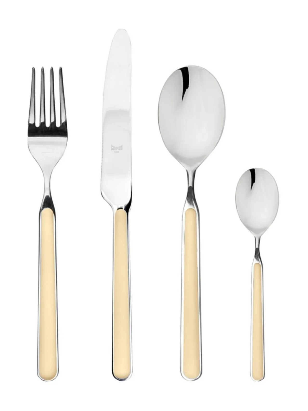 Lasikuidulla rikastettu hartsinen kahvaosa takaa aterimien kestävyyden ja värejen kirkkauden monien pesukertojenkin jälkeen. Kahvan hartsiosat ovat ultraäänihitsattuja mikä tekee kahvaosasta pitkäkestoisen. Materiaali ruostumatonta terästä, kahvaosat hartsia. Konepesunkestävä. Valmistettu Italiassa.Tuotenumero1518979 Materiaaliruostumaton teräs, hartsi, lasikuitu VäriVANILLA Avainsanataterimet, aterinsetti, väri, värilliset aterimet