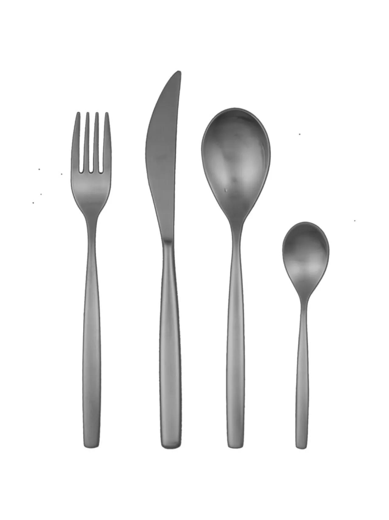 Stiria Oro Nero Ice aterinsetti sisältää kuusi ruokahaarukkaa, kuusi ruokaveistä, kuusi ruokalusikkaa ja kuusi kahvilusikkaa. Mattamusta väri on titanium-molekyylipintakäsittelyn tulos. Materiaali on korkealaatuista suomalaista konepesunkestävää ruostumatonta terästä.