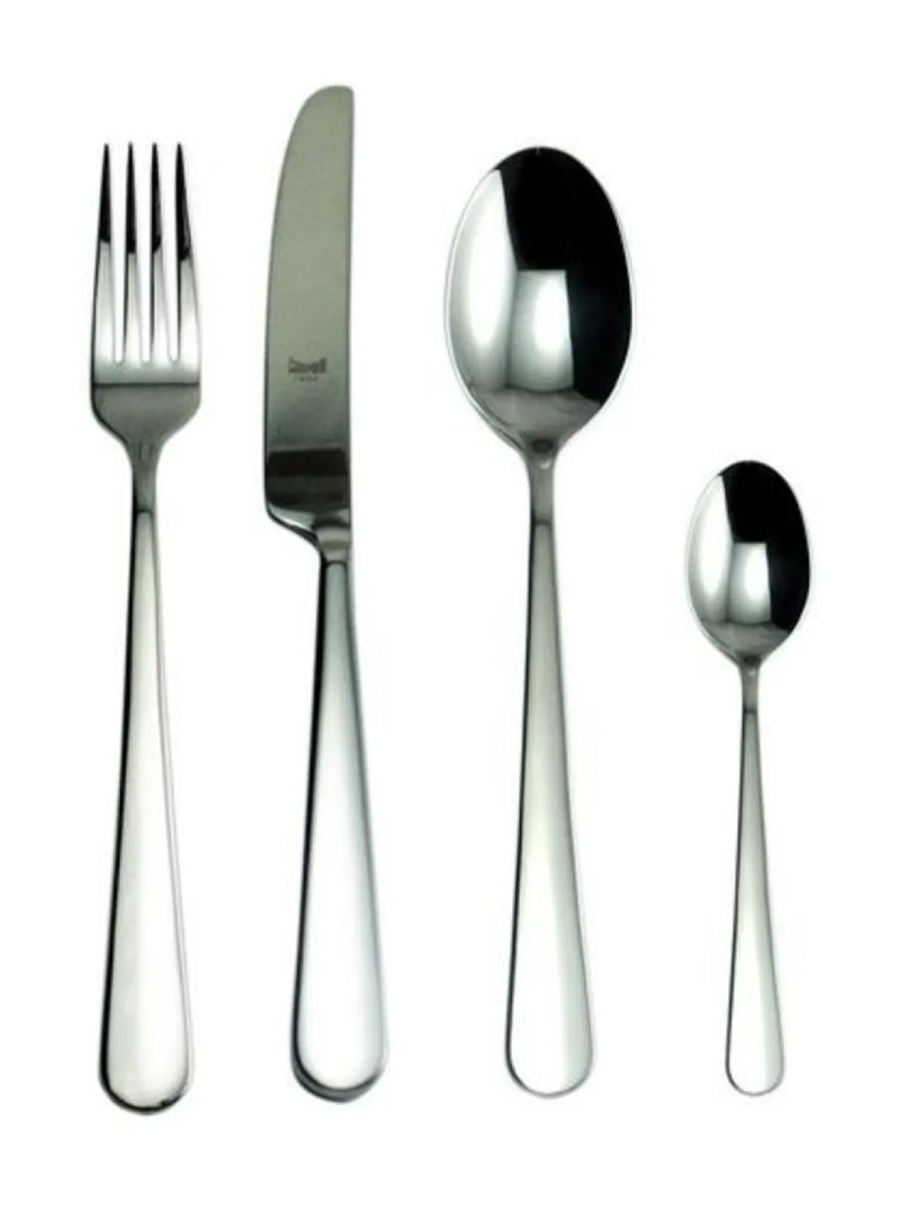 Moderni design, italialainen muotoilu. Aterinsetti sisältää kuusi ruokahaarukkaa, kuusi ruokaveistä, kuusi ruokalusikkaa ja kuusi kahvilusikkaa. Konepesunkestävää ruostumatonta terästä.