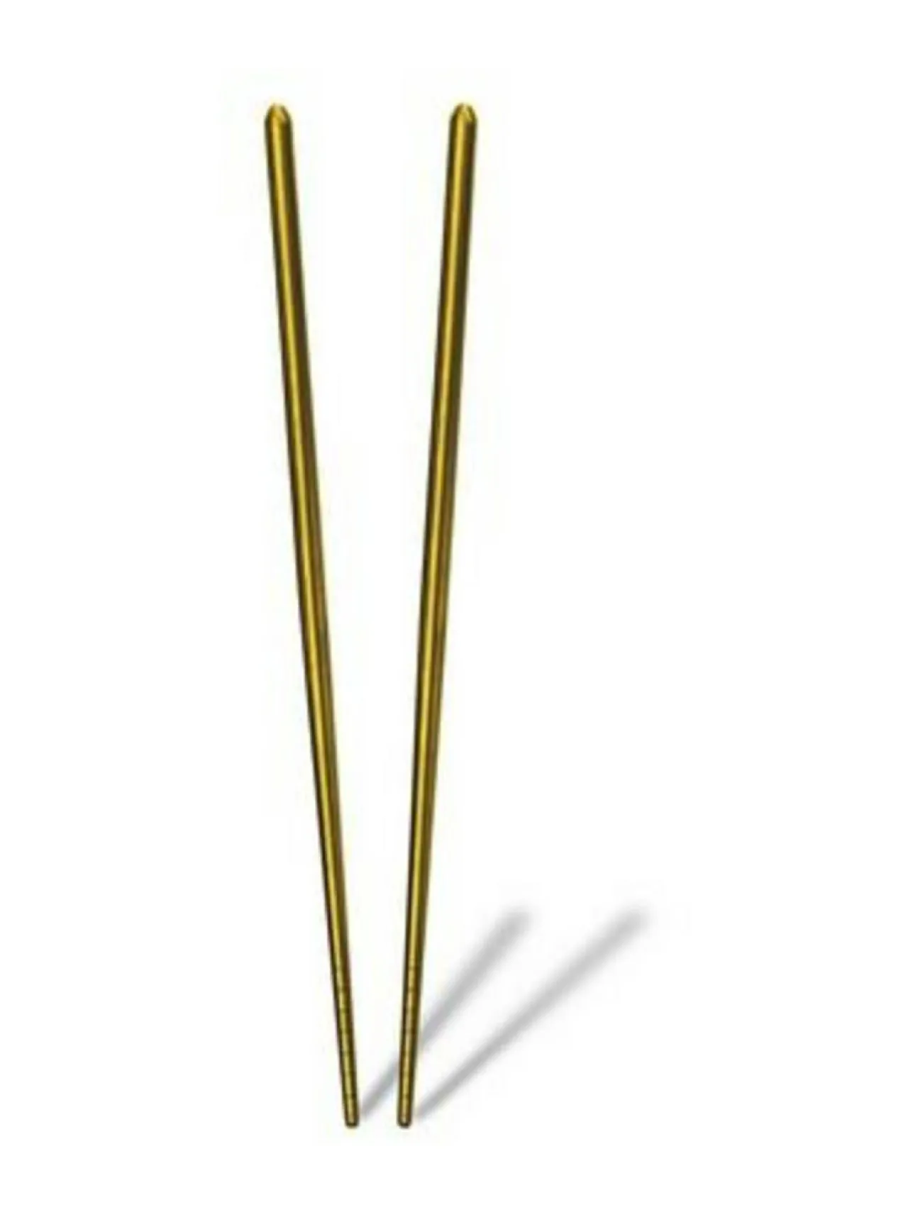 Kultaiset Oro-syömäpuikot ruostumattomasta teräksestä. Oro (Gold) erikoisväri ei ole pinnote, vaan se on PVD (Physical Vapor Deposit) -molekyyliimplantointiprosessin tulos. PVD -tuotteet ovat koneenpestäviä, ne eivät läikkiinny, eivätkä ne korrosioidu käytössä. Kevyiden ja hygieenisten syömäpuikkojen pituus on 225 mm. Tyylikkäässä pakkauksessa on yksi pari syömäpuikkoja.