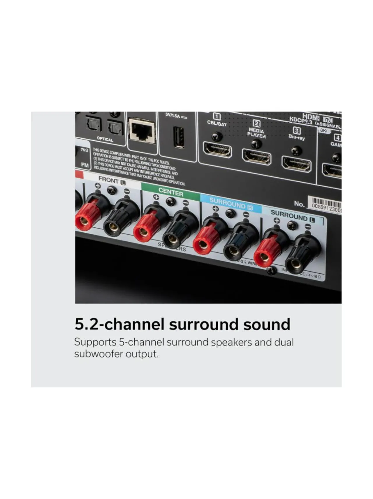 Jos haluat nopeasti yhdistää lähes minkä tahansa mobiililaitteen tai tietokoneen äänen musiikkijärjestelmääsi, Bluetooth on erittäin kätevä vaihtoehto, joka varmistaa toimivuuden minkä tahansa sovelluksen kanssa. Äänen vastaanoton lisäksi AVR-S670H osaa myös lähettää ääntä eteenpäin Bluetoothin avulla, joten voit helposti liittää esimerkiksi langattomat Bluetooth-kuulokkeet vahvistimeen yömyöhäistä kuuntelua varten.