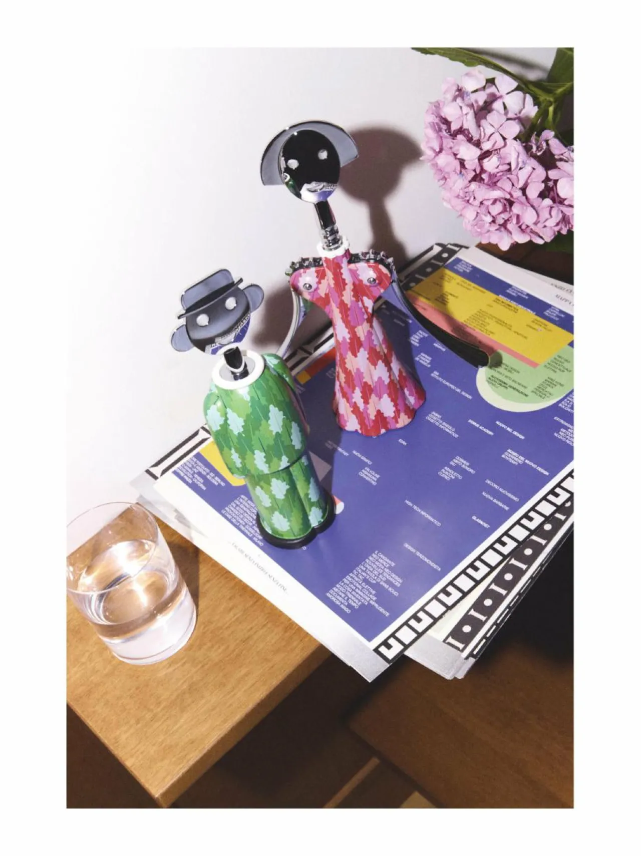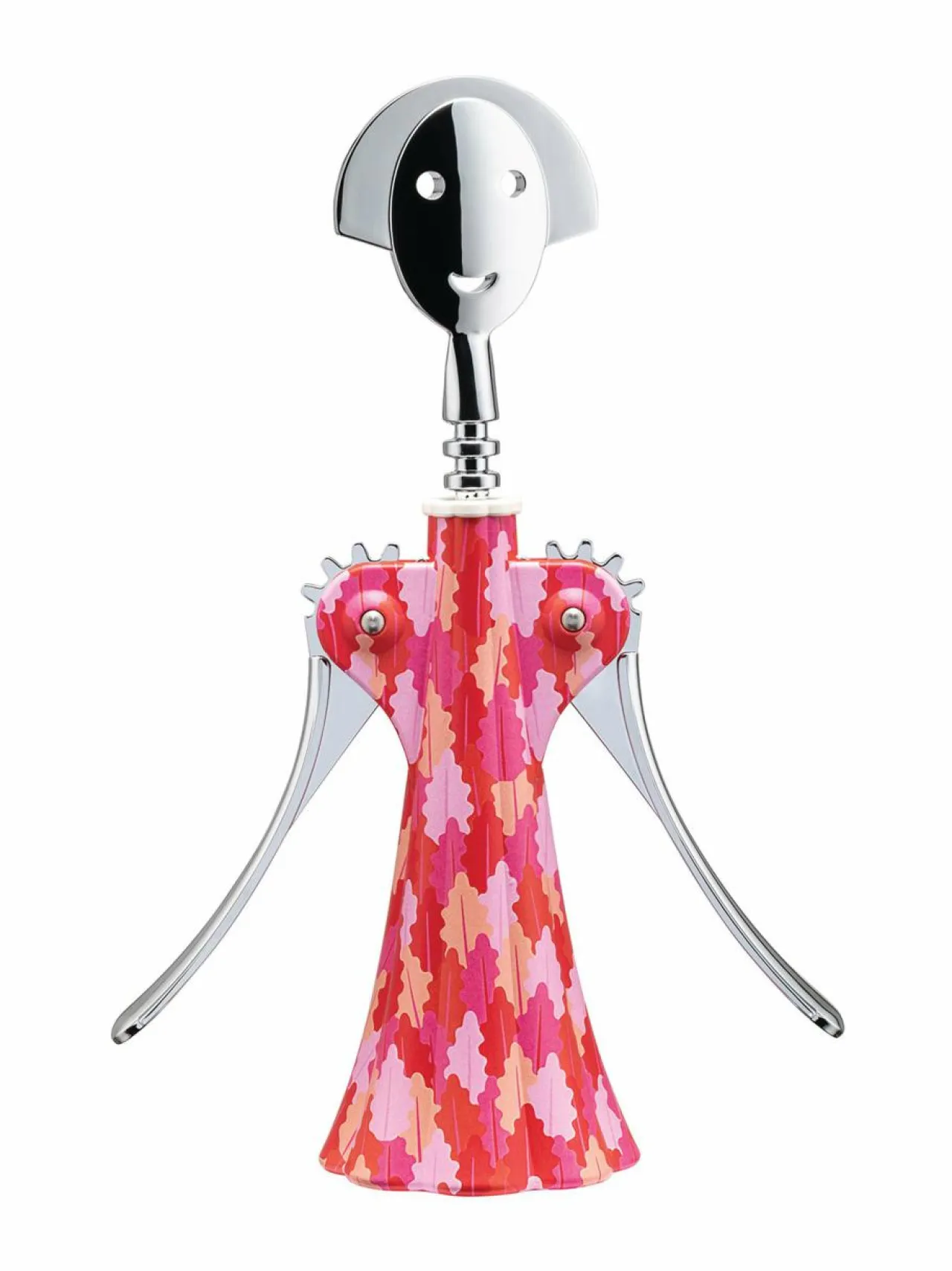 Alessin Anna G. -korkkiruuvi uusin versio juhlistaa tämän ikonisen parivaljakon tarinaa, joka on saanut alkunsa Alessandro Mendinin käsistä. Fulvia Mendinin luoma uusi kuosi luo upean puuasun, jossa vaaleanpunaiset sävyt ja lehtikuviointi korostavat hahmon pehmeää ja herkkää muotoilua.