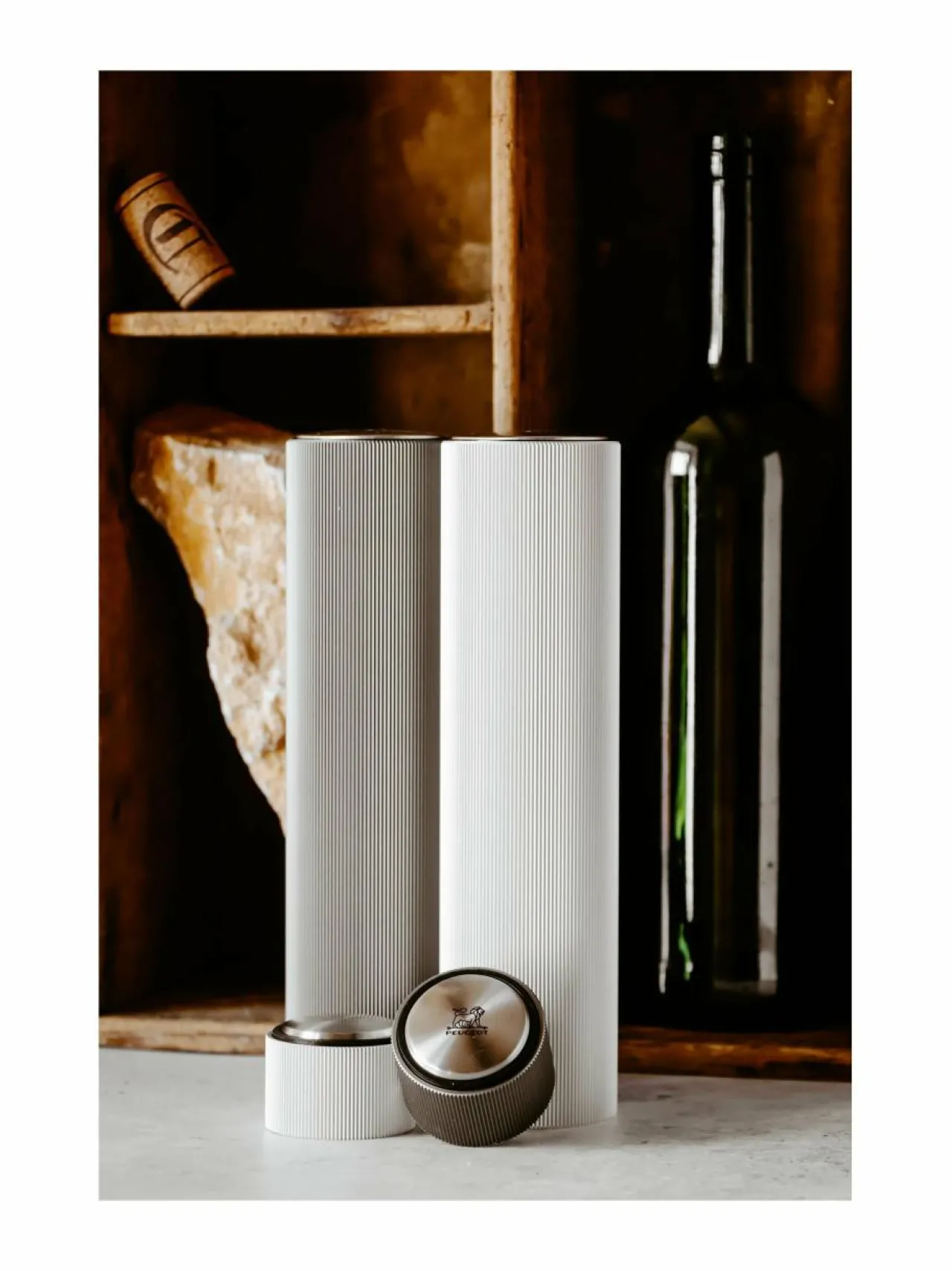 Peugeot tunnetaan laadukkaiden pippurimyllyjen valmistajana ja keksijänä. Valikoima sisältää myös laadukkaita viinitarvikkeita. Line-sarjan elektroninen viinipullonavaaja on jokaisen viininystävän toivelahja. Tyylikäs ulkomuoto ja loppuun asti mietitty tekniikka takaavat varman sekä tyylikkään tavan avata viinipullo. Toimi näin: Poista viinipullon metallikapseli pakkauksen mukana tulevalla kapselileikkurilla. Aseta avaaja korkin päälle ja paina kevyesti. Pidä paikoillaan kunnes korkki on noussut pois pullosta. Käännä avaajaa 90 asteen kulmaan, jolloin korkki automaattisesti poistuu avaajasta. Avaaja on ladattava. Yhdellä latauksella avaat noin 80 pulloa.