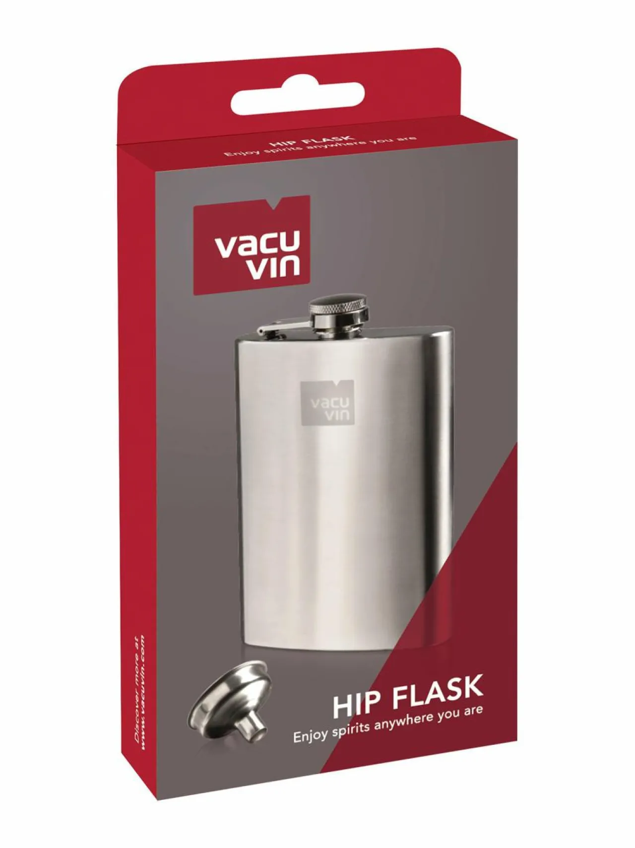 Baari- & Viinitarvikkeet|Vacuvin Hip Flask & Funnel -taskumatti ja suppilo STEEL