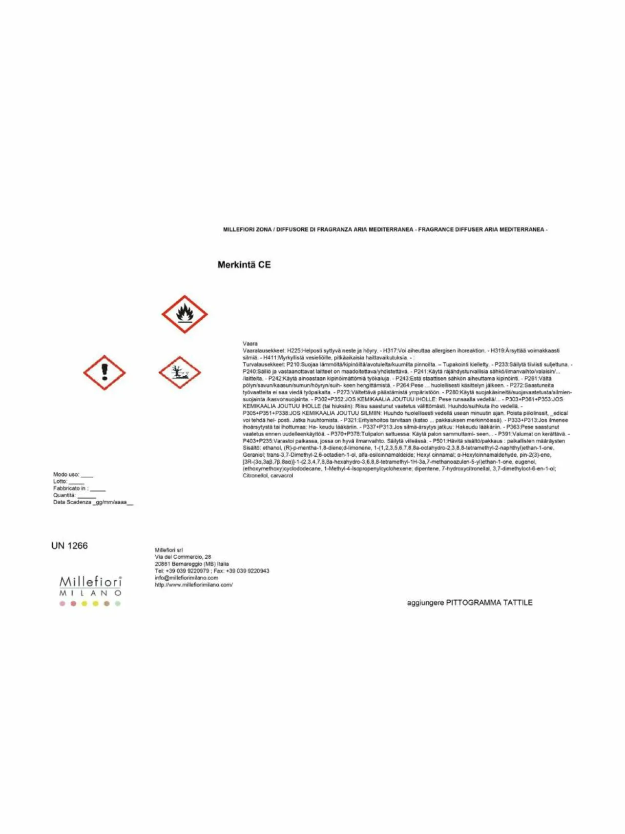 Be the first to review “Huonetuoksut & Tuoksukynttilät|Millefiori Zona Aria Mediterranea -huonetuoksu” Peruuta vastaus