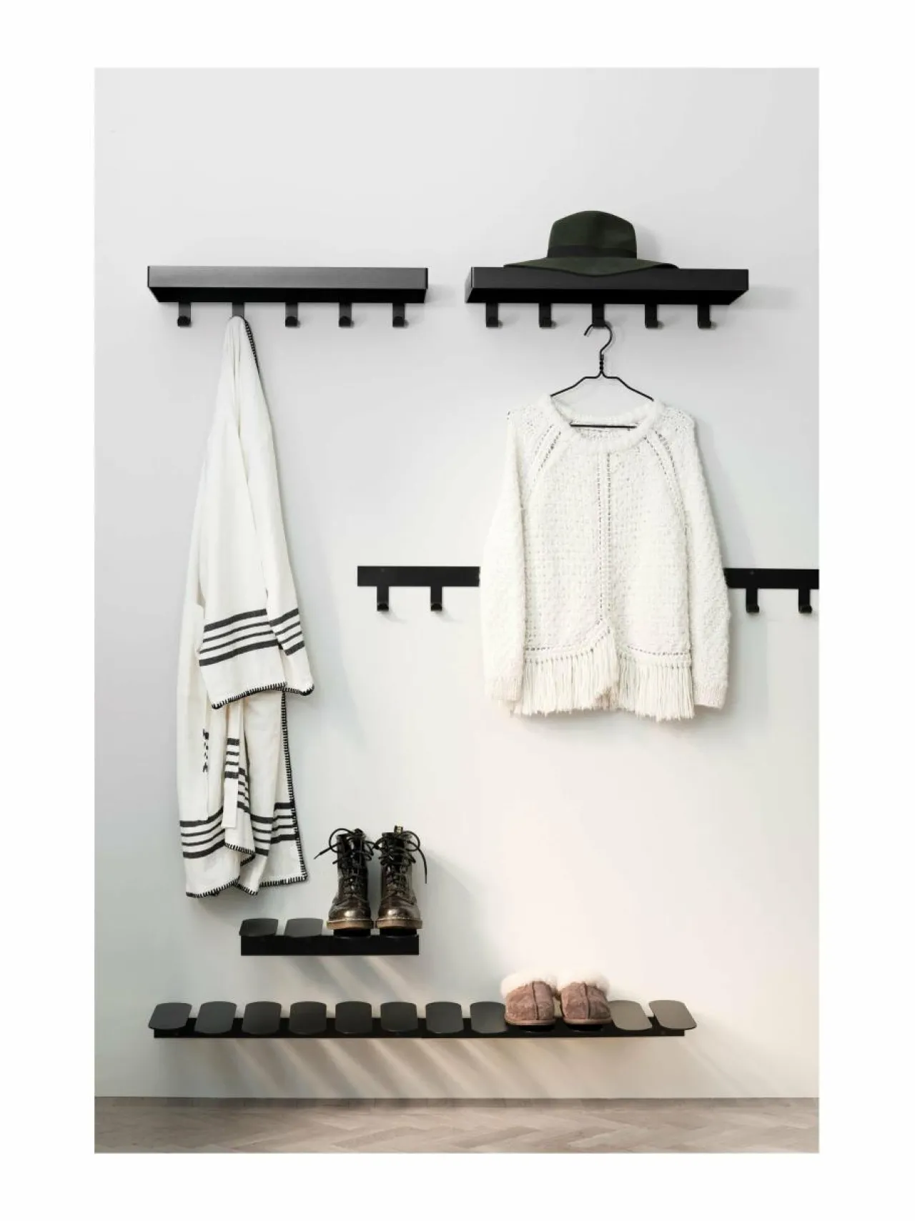 Step S -kenkätelineeseen saa tyylikkäästi esille kaikenlaiset kengät. Gustav Rosénin suunnittelemassa telineessä on kaksi soikeaa ja hieman viistoa metallilevyä, joiden päällä kengät ovat siististi ja näyttävästi esillä. Useammalla hyllyllä rakennat vaikuttavan kokonaisuuden. Mitat ovat 9 x 20 x 29 cm.
