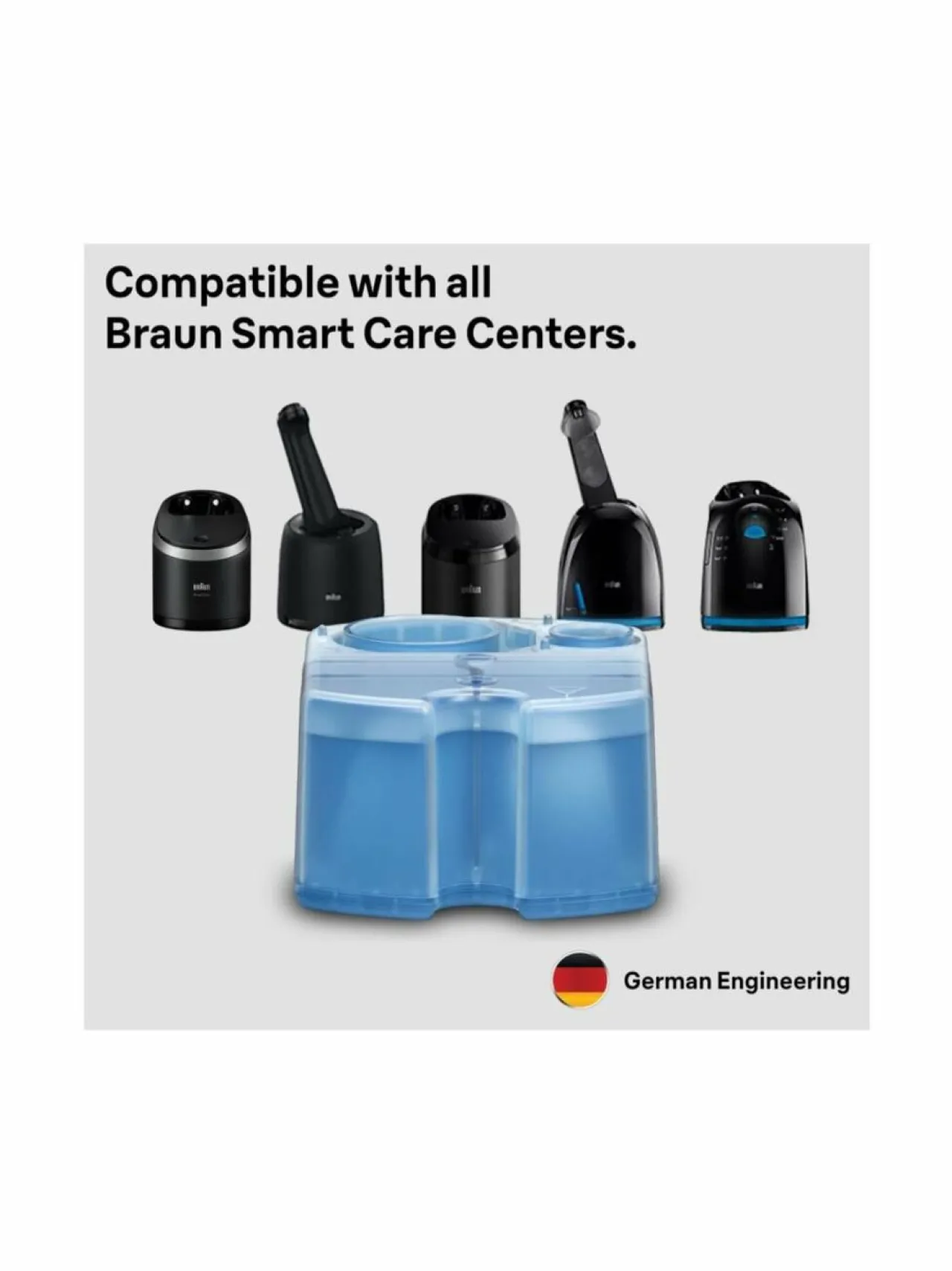 Pakkauksessa on 2 kappaletta Braun 3in1 ShaverCare -vaihtokasettia SmartCare- ja Clean&Charge-huoltokeskukselle. Alkoholipohjainen liuos puhdistaa hygieenisemmin kuin vesi, poistamalla karvat ja ihosolut jokaisen ihokarvanpoiston jälkeen. Korkealaatuiset voiteluaineet ylläpitävät ihokarvanpoistolaitteen teriä ja auttavat vähentämään kitkaa, mikä saattaa aiheuttaa ihoärsytystä. Sitruunanraikas koostumus vapauttaa virkistävän tuoksun.