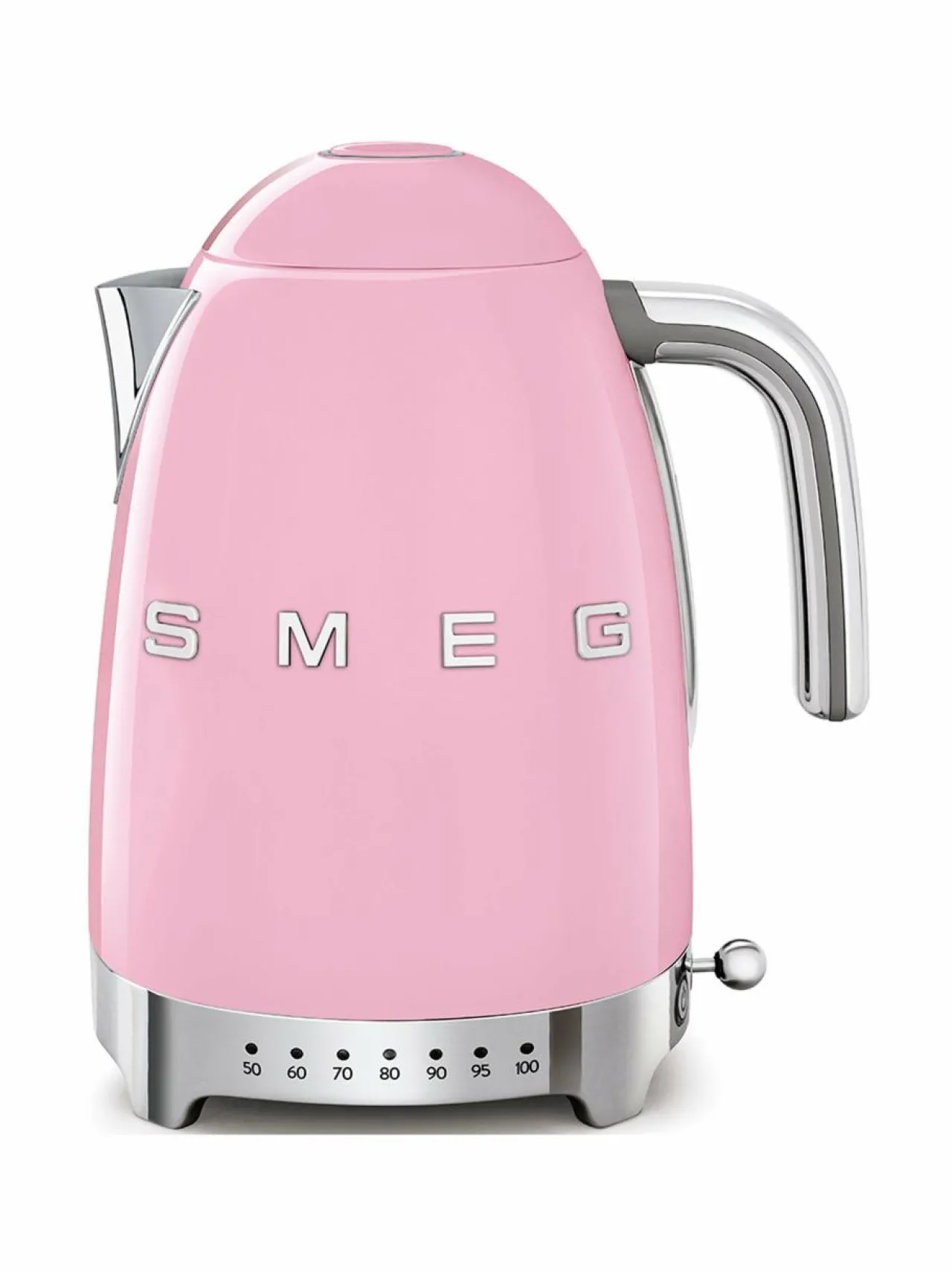 Smegin KLF04PKEU-vedenkeittimessä on seitsemän eri lämpötila-asetusta 50 °C ja 100 °C välillä, joten voit lämmittää lempiteelaadullesi parhaiten sopivaa vettä. Tehokas 2400 W vedenkeitin kiehauttaa nopeasti jopa 1,7 litraa vettä kerrallaan. Keittimen kannuosa on vaaleanpunaiseksi maalattua ruostumatonta terästä.