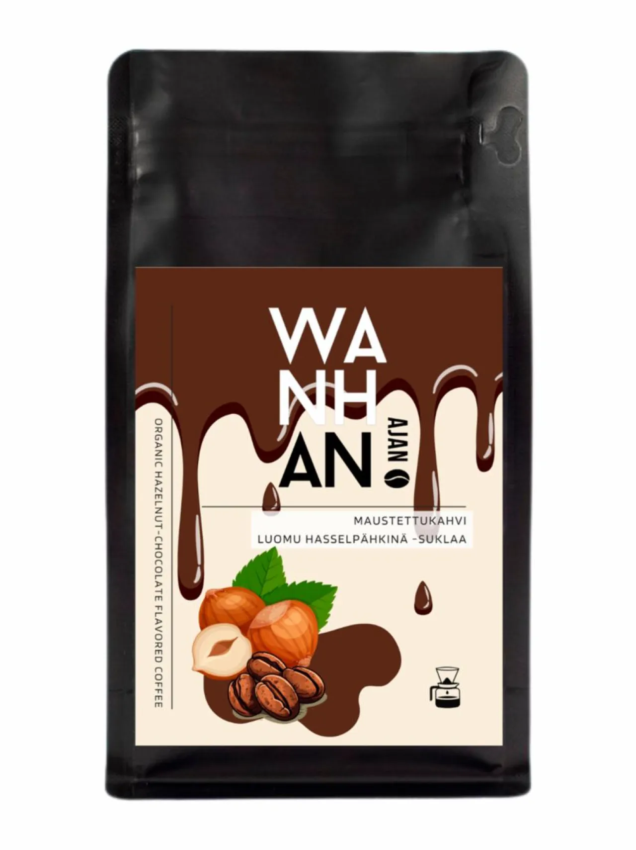 Herkullisella paahdetulla Luomu Hasselpähkinällä, sekä täyteläisellä Luomu Kaakaonibseillä maustettu 100% Luomu Arabica-kahvista valmistettu maustekahvi.