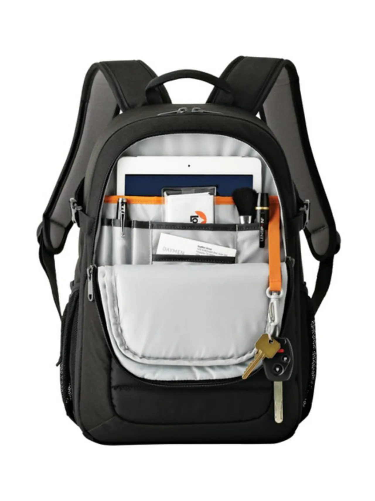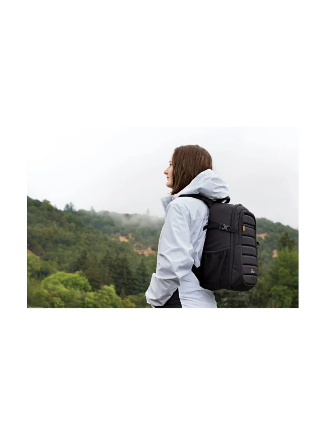 LowePro repun sisus on pehmustettu, ja täysin säädettävän sisuksen avulla voi muokata repun tarvitsemallesi kameralle ja varusteille. Repun etuosan sisäpuolella on suojaava tila (CradleFit™ -tasku) 10” tablet tietokoneelle sekä tasku pienille tarvikkeille ja muistikorttitasku.
