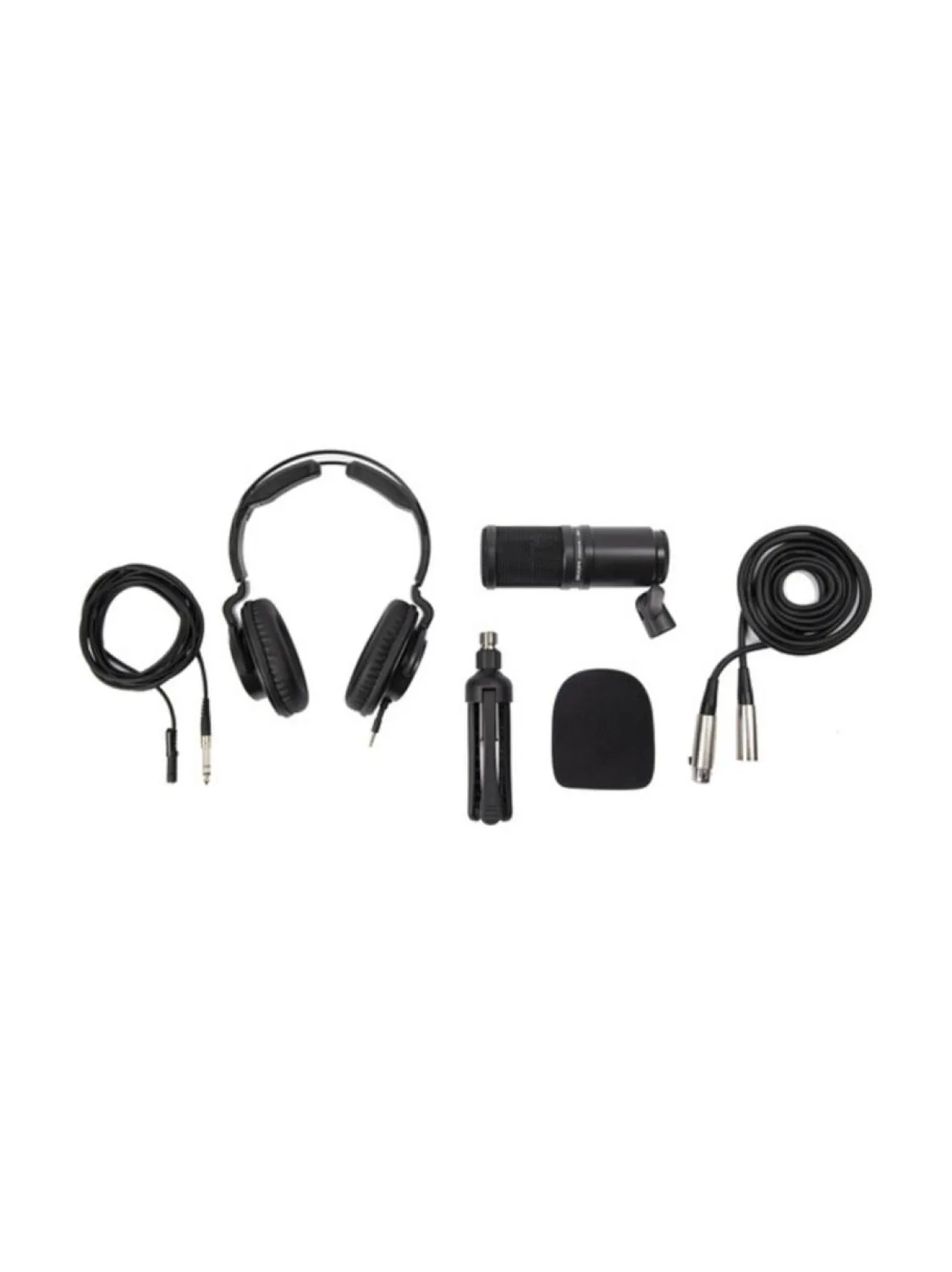 Mikrofonisetti, jossa mukana myös kuulokkeet, pöytäjalusta ja tarvittavat kaapelit. Loistava kaveri esimerkiksi Zoom LiveTrak L-8-mikserille!