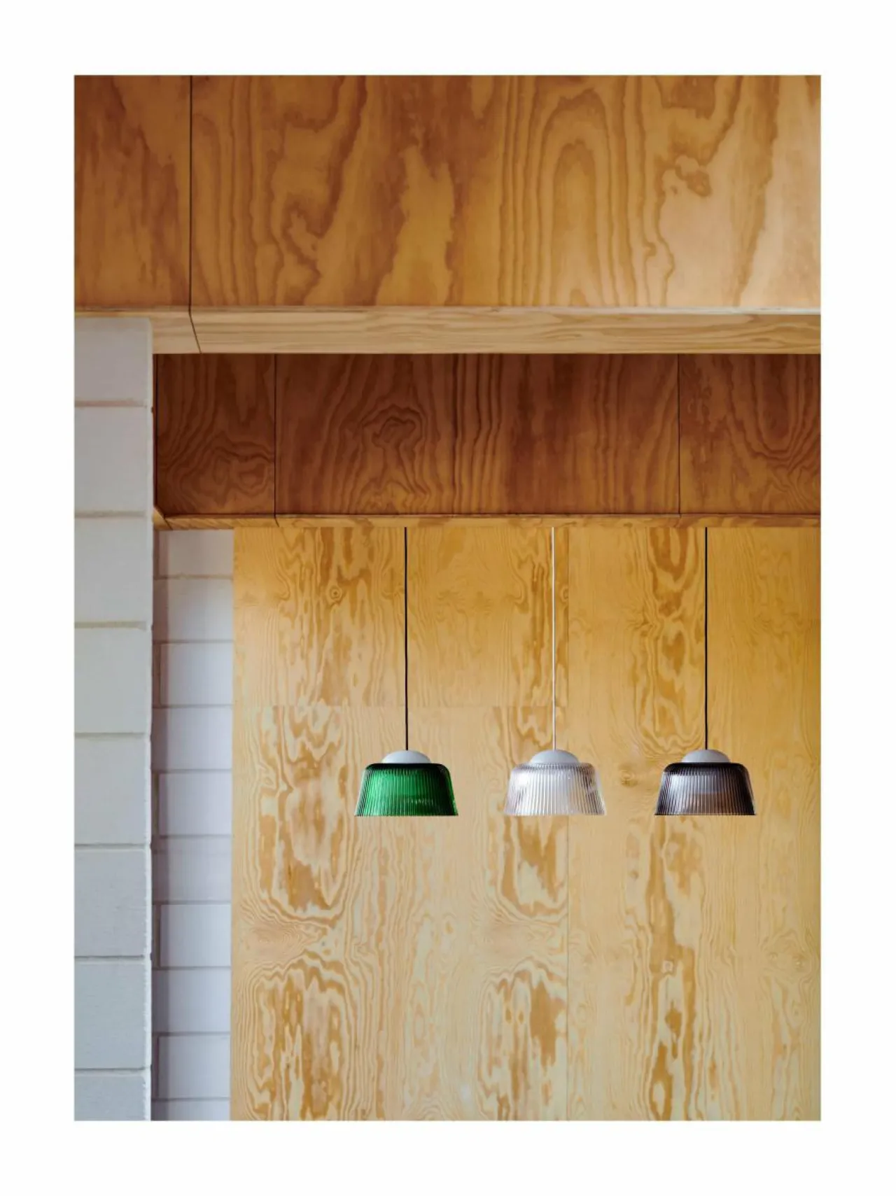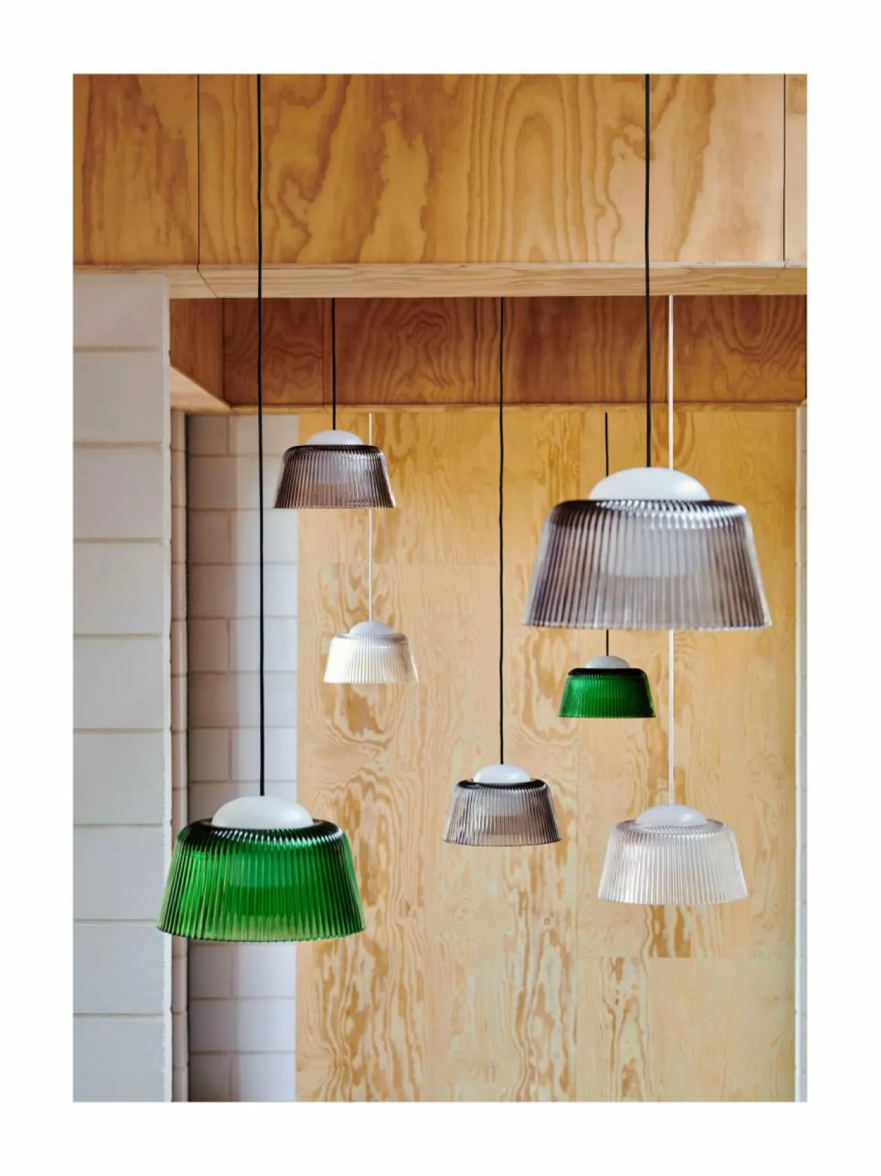 HAY:n Brim-riippuvalaisimen varjostin on valmistettu prässätystä lasista ja se on saanut inspiraationsa menneiden aikojen klassisista lasivalaisimista. Valaisimen sisäinen pallo peittää polttimot ja sitä ympäröi uurrettu lasivarjostin, joka parantaa valon leviämistä. Kompakti Brim-riippuvalaisin sopii yksinään esimerkiksi pienempiin tiloihin katseenvangitsijaksi tai yhdistettynä useampiin luomaan näyttävä valaisinkokonaisuus.