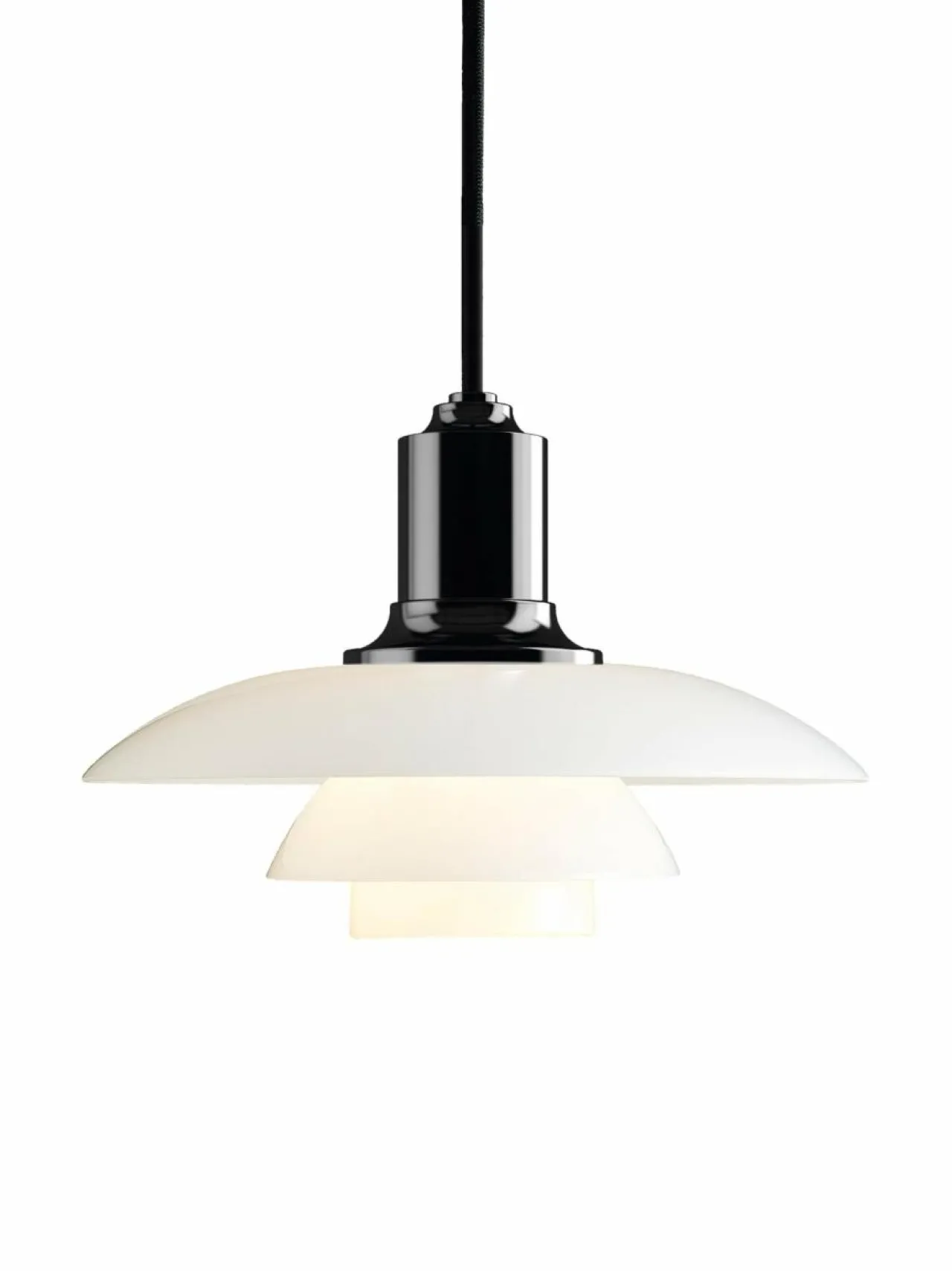Poul Henningsenin suunnitteleman PH 2/1 -riippuvalaisimen kolmesta opaalilasiosasta koostuva varjostin heijastaa valosta suurimman osan alaspäin häikäisemättä, mutta päästää pehmeää hehkua myös muualle huoneeseen. Suunnitellessaan kolmivarjostinjärjestelmän 1920-luvulla Henningsen oli yksi ensimmäisistä, joka omaksui tieteellisen näkökulman valosuunnitteluun – logaritmiseen spiraaliin perustuva muoto sallii valon symmetrisen levittymisen varjostimen koko alueelle.
