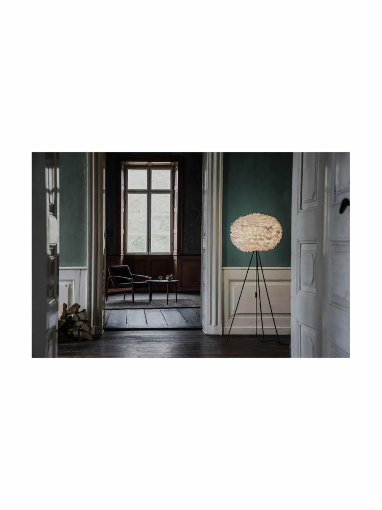 Näyttävä varjostin tuo eksotiikkaa sisustukseen ja valaisee pehmeästi. Varjostin on valmistettu aidoista höyhenistä, paperista ja metallista. Halkaisija on 65 cm ja korkeus 40 cm. Johto, lamppu ja kanta eivät sisälly pakkaukseen. Max. 15 W LED-polttimo.