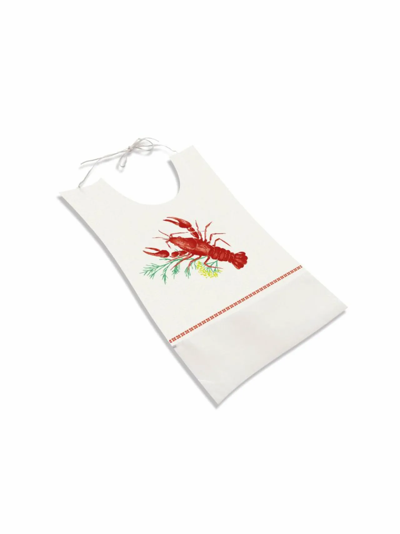Käytännöllinen rapukauluri on tukevaa, kangasmaista Airlaid-paperia. Pakkauksessa on kuusi kauluria. Yhden kaulurin koko on 32 x 52 cm.
