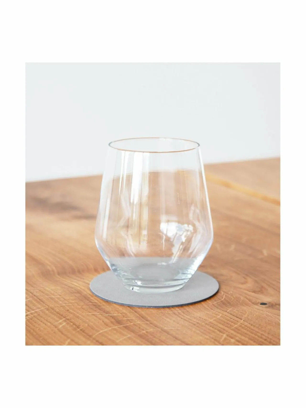 Tanskassa suunniteltu pyöreä lasinalunen. Materiaali on OEKO-TEX -sertifioitua kasviparkittua kierrätysnahkaa, joka on peräisin muoti- ja huonekaluteollisuuden ylijäämistä. Pohja on luonnonkumia, joka estää liukumisen.
