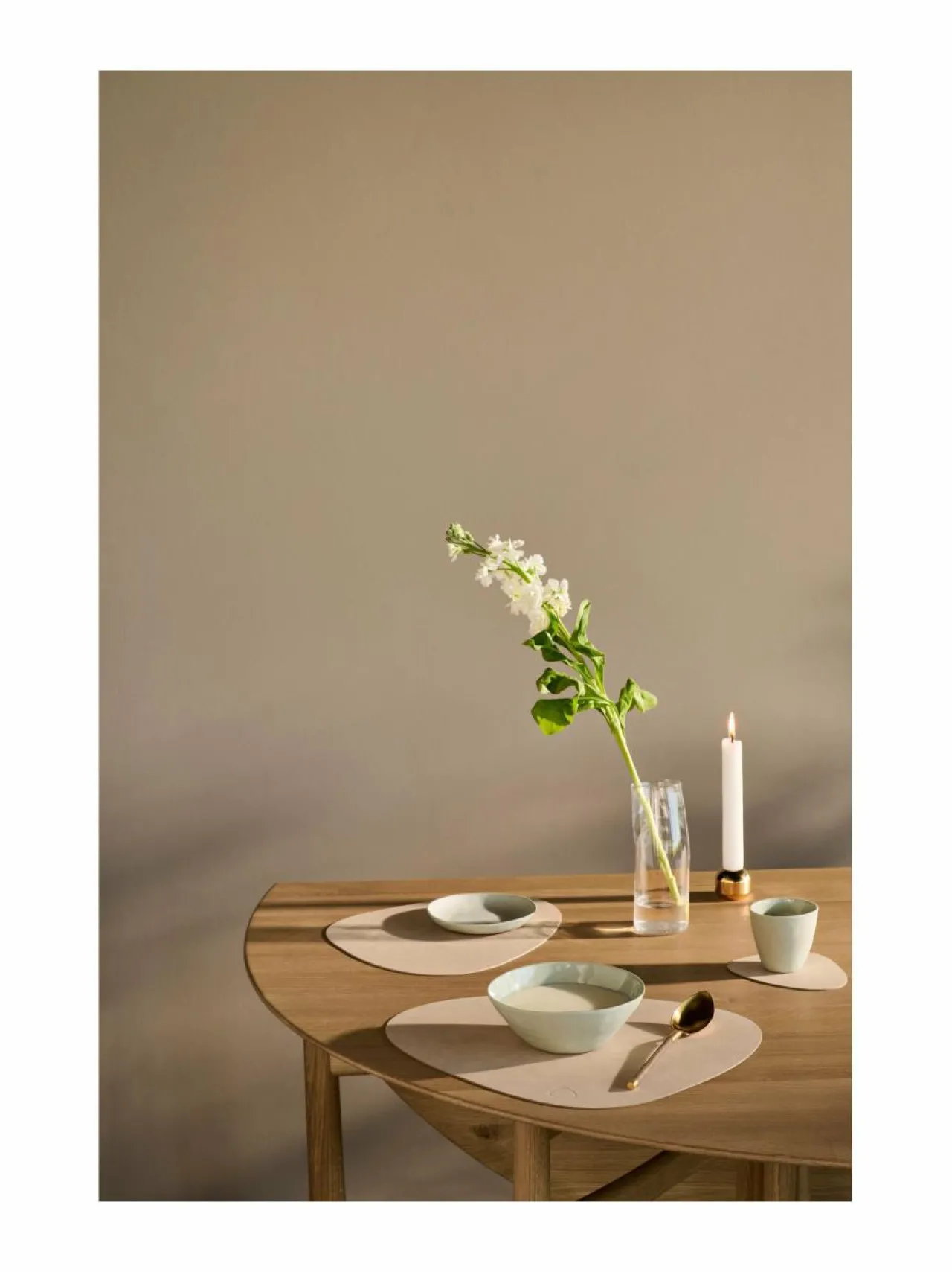 Tanskassa suunniteltu pöytätabletti mokkamaisella pinnalla. Materiaali on kestävää OEKO-TEX -sertifioitua kasvipark…