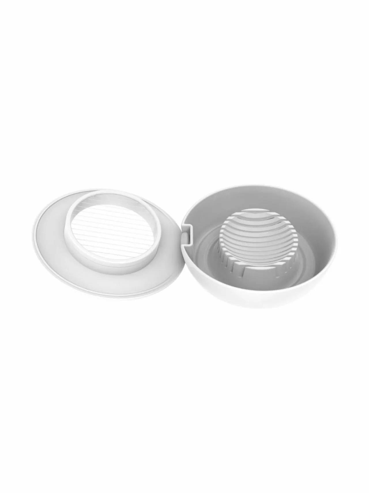 Leikkurilla viipaloit kananmunat helposti ja nopeasti. Leikkurissa on säiliö kananmunankuorille.