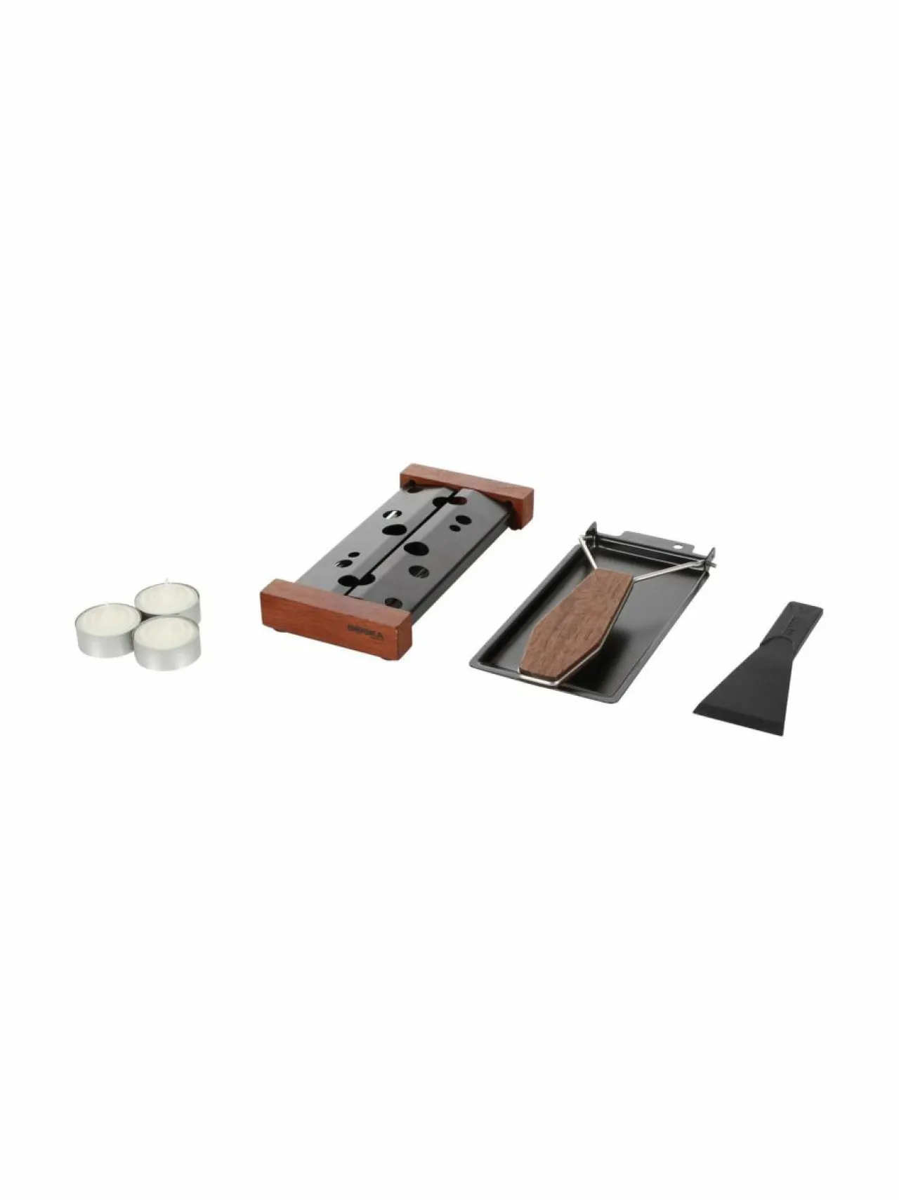 Partyclette ToGo -raclettesetillä pidät juustoiset raclettejuhlat milloin vain. Pakkauksessa on tammikehikko, raclettepannu, 3 lämpökynttilää ja lasta. Materiaali on tammea ja ruostumatonta terästä.