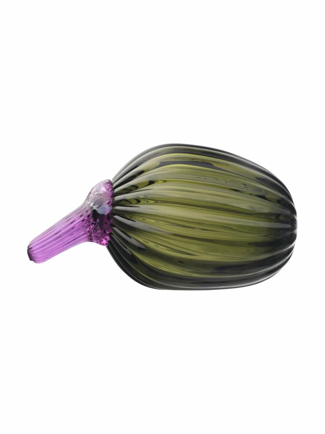 Jokainen lasitaide-esine saa muotonsa yksitellen Iittalan lasitehtaalla käsityönä ja suupuhaltamalla. Kesäkurpitsa-lasiteoksen muoto, jota kirkkaan violetti kanta koristaa, on hyvä esimerkki Oiva Toikan leikkisästä ja mielikuvitusrikkaasta luovuudesta. Näyttävä sisustuselementti. Näyttävä yksittäisenä sisustusesineenä tai koottuna ryhmäksi taidelasisarjan muiden osien kanssa.