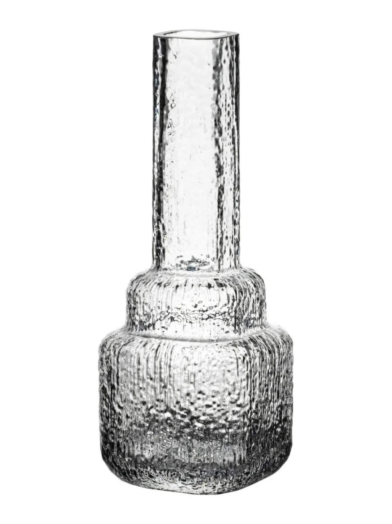Kuulea-lasimaljakko on kaunis katsoa sellaisenaankin, mutta edukseen suosikkikukkiesi kanssa. Kuulea-sarjan tuotteita yhdistää pinnan kuviointi, joka on saanut inspiraationsa sateen ropinasta ikkunaan. Suunnittelija Tuuli Saarelainen. Maljakko suupuhallettua lasia, joten siinä voi näkyä käsityön jälkiä ja olla ilmakuplia.
