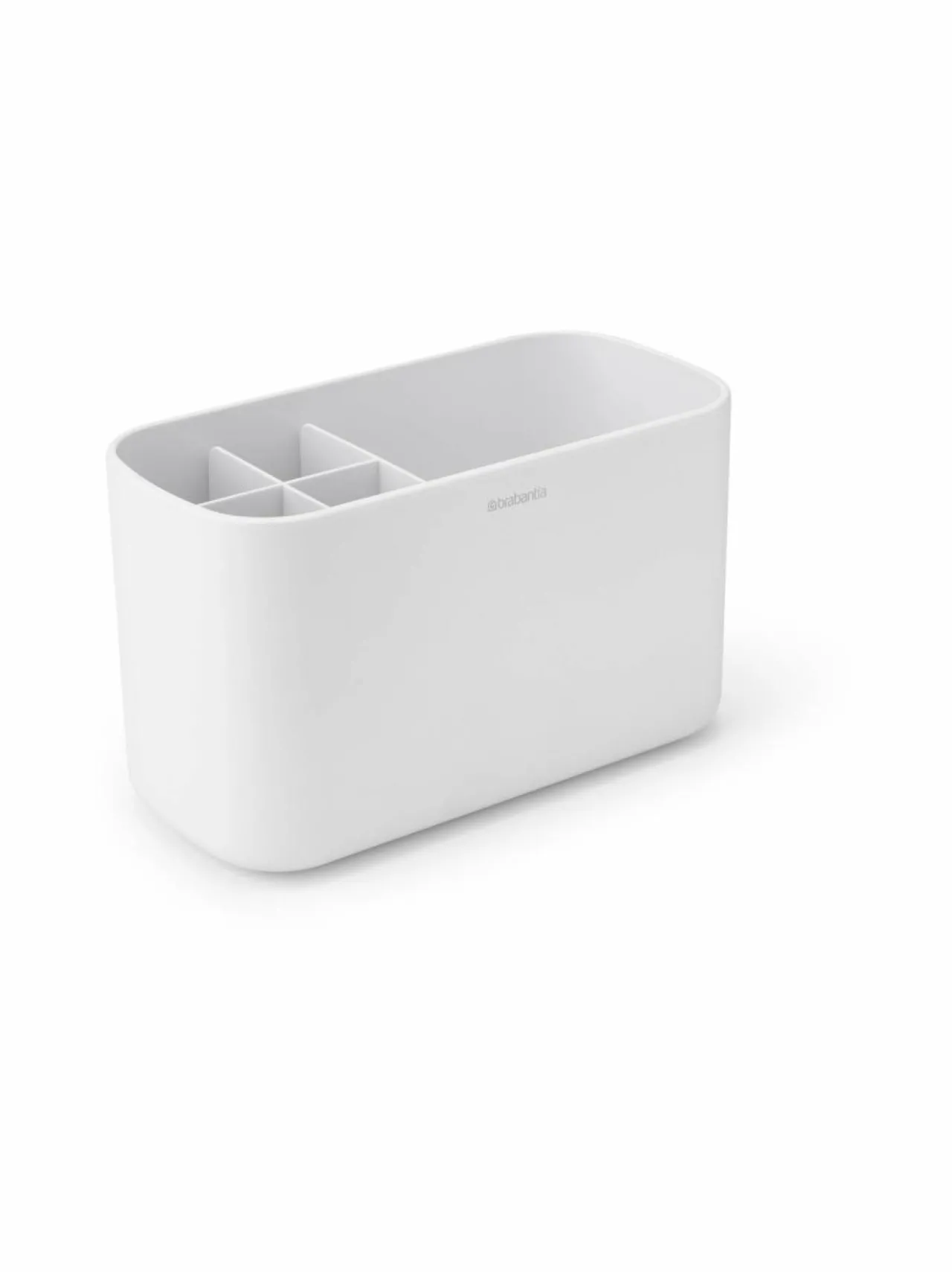 Brabantia ReNew kylpyhuoneenjärjestelijä pitää kylpyhuoneen pienet tavarat hyvässä järjestyksessä. Minimalistinen muotoilu sopii hyvin moderniin kylpyhuoneeseen. Pohjassa on ulos nostettava jaottelija, joka helpottaa puhdistamista. Pohjassa myös liukueste. Mitat 19,6 x 9,9 x 11 cm. 5 vuoden takuu.