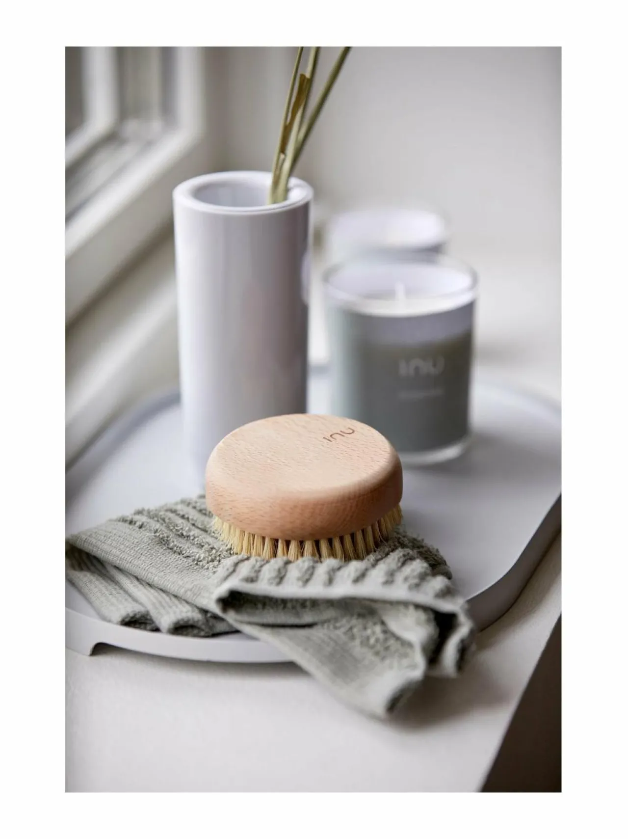 Zone Denmarkin ylellisen Inu-sarjan spa-tuotteet tuovat hektiseen arkeen ripauksen luksusta ja harmoniaa. Kevyestä pyökistä ja pehmeästä luonnonharjaksesta valmistetulla kylpyharjalla luot jokaiseen päivään pieniä nautinnon ja läsnäolon hetkiä.