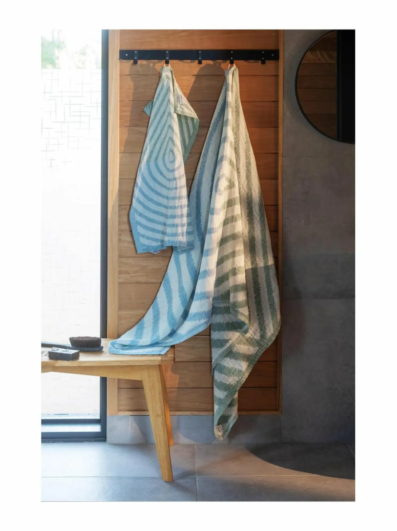 Kylpyhuonetekstiilit|Lapuan Kankurit Metsälampi-pellavapyyhe 1 WHITE-GREEN-RAINY BLUE
